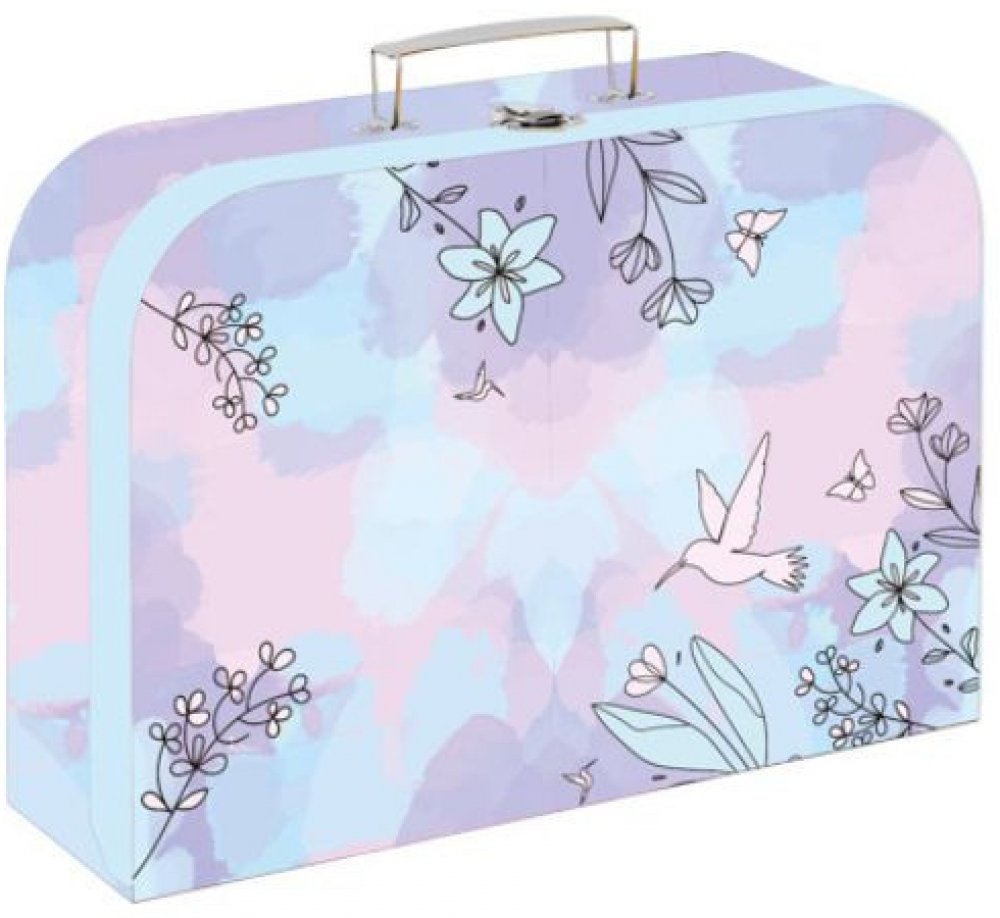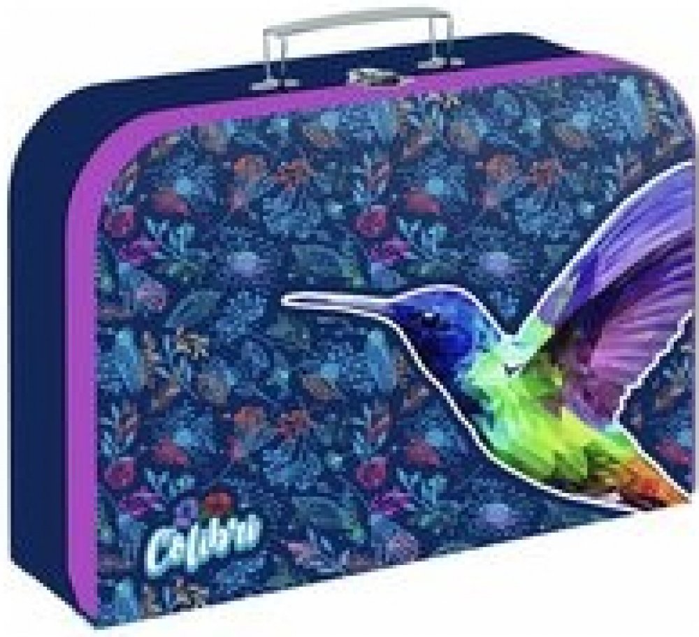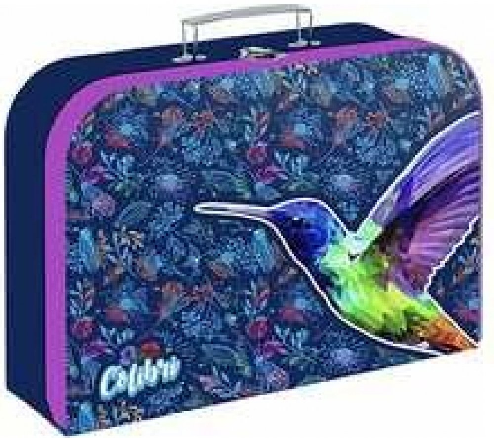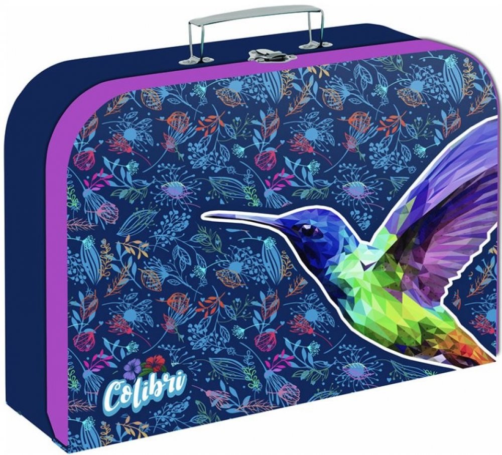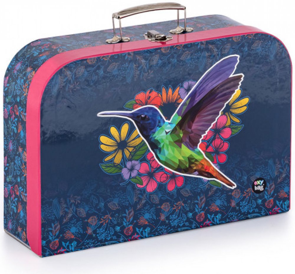 Krásný dětský kufřík s motivem kolibříka v růžové barvě, vhodný na úschovu dětských pomůcek, výtvarných potřeb, hraček atd.
