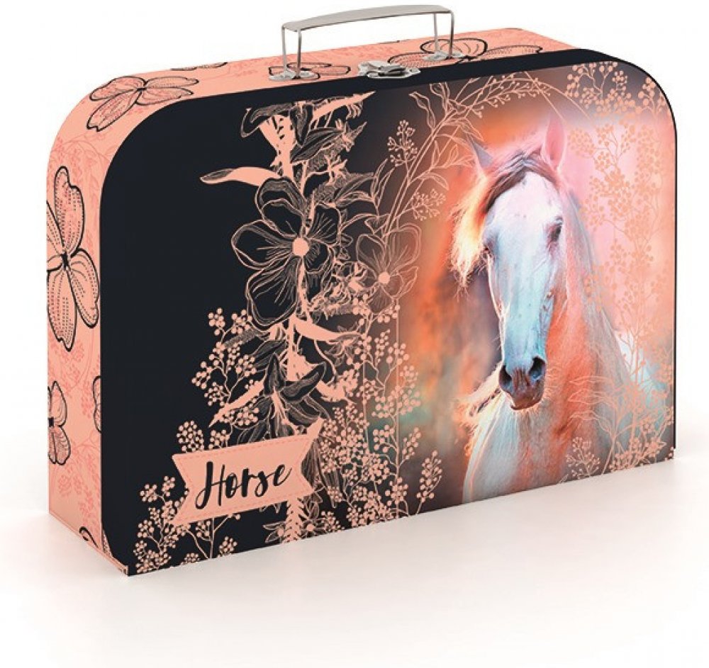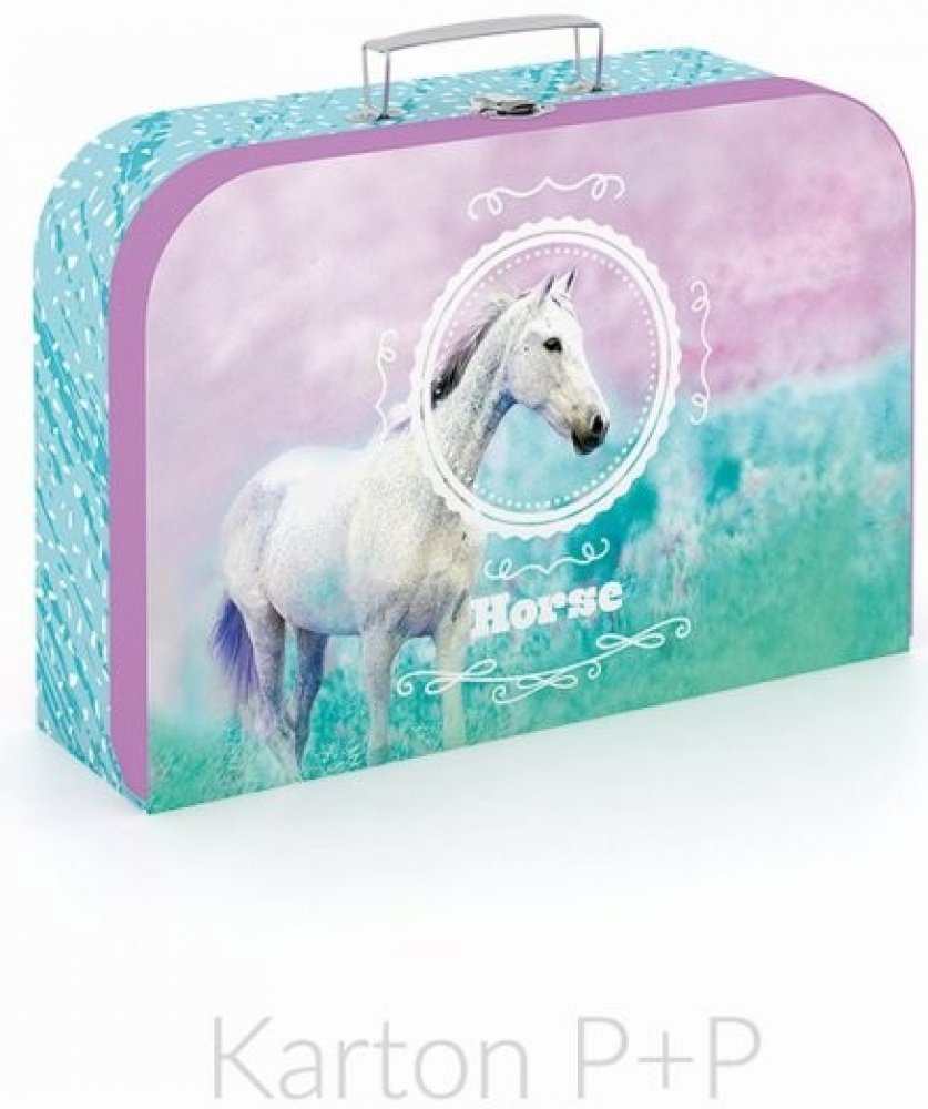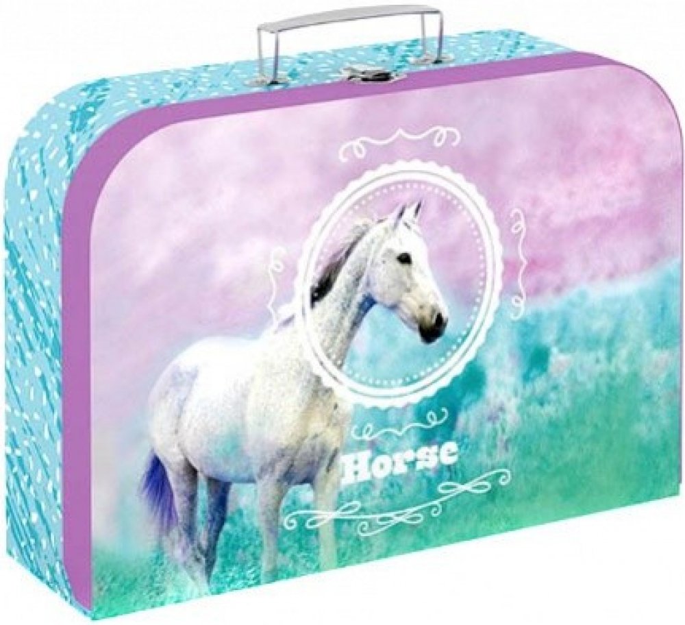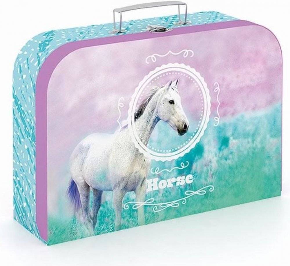 Krásný dětský kufřík s motivem zdobeného koně, vhodný na úschovu dětských pomůcek, výtvarných potřeb, hraček atd.