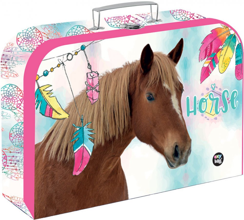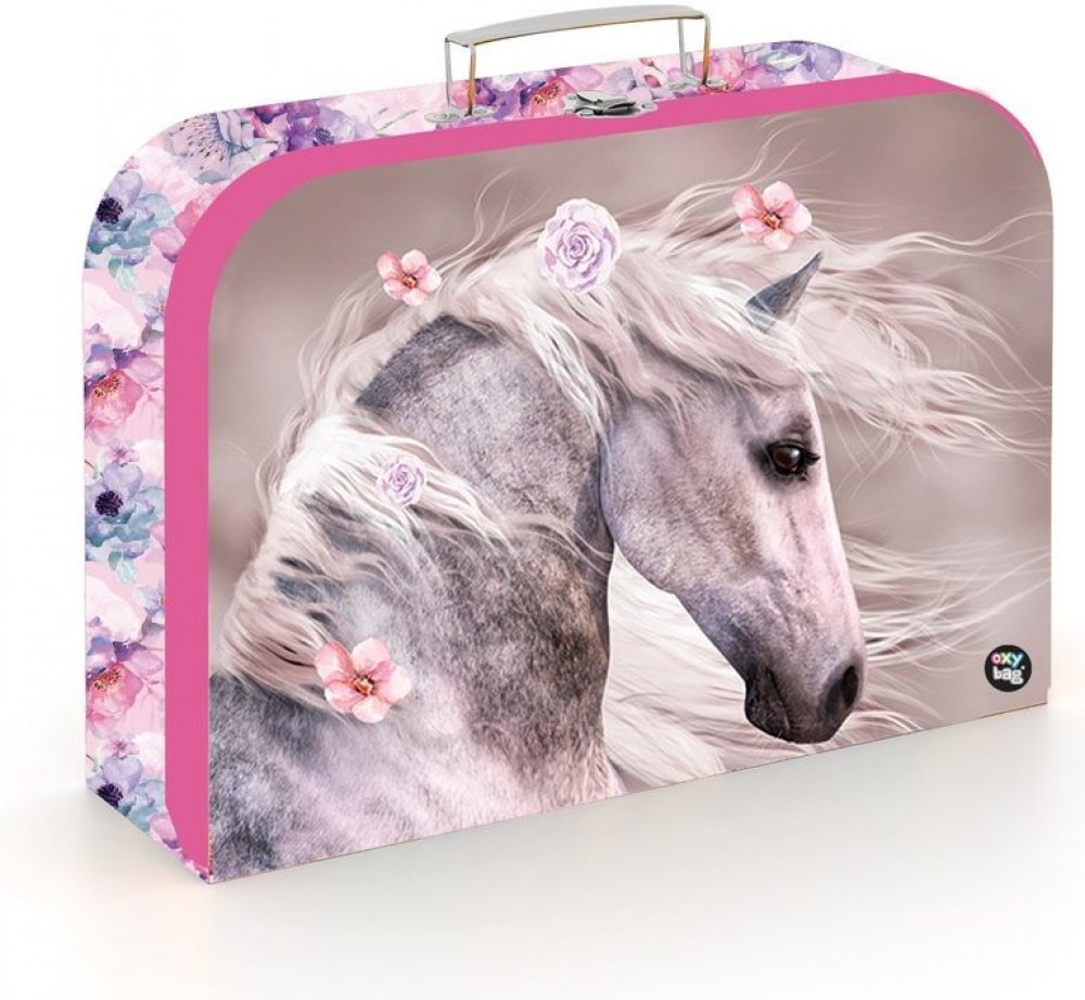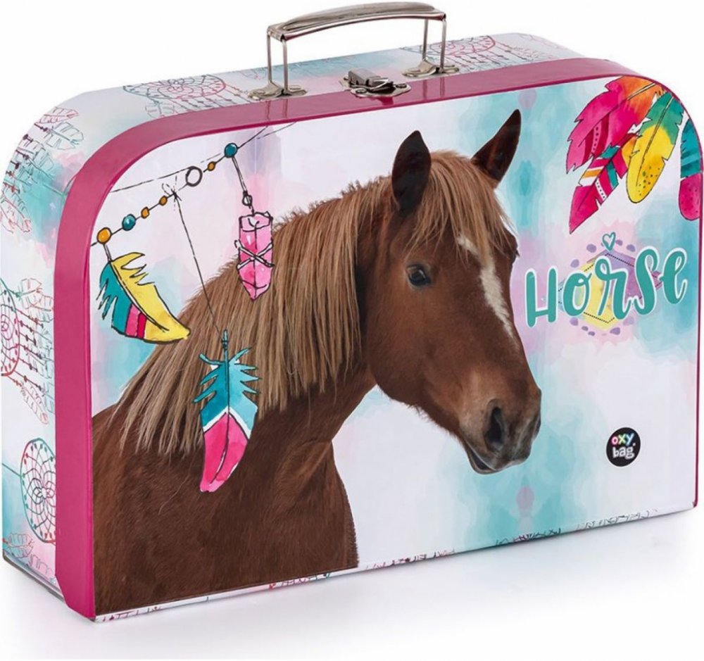 Krásný dětský kufřík s motivem zdobeného koně, vhodný na úschovu dětských pomůcek, výtvarných potřeb, hraček atd.