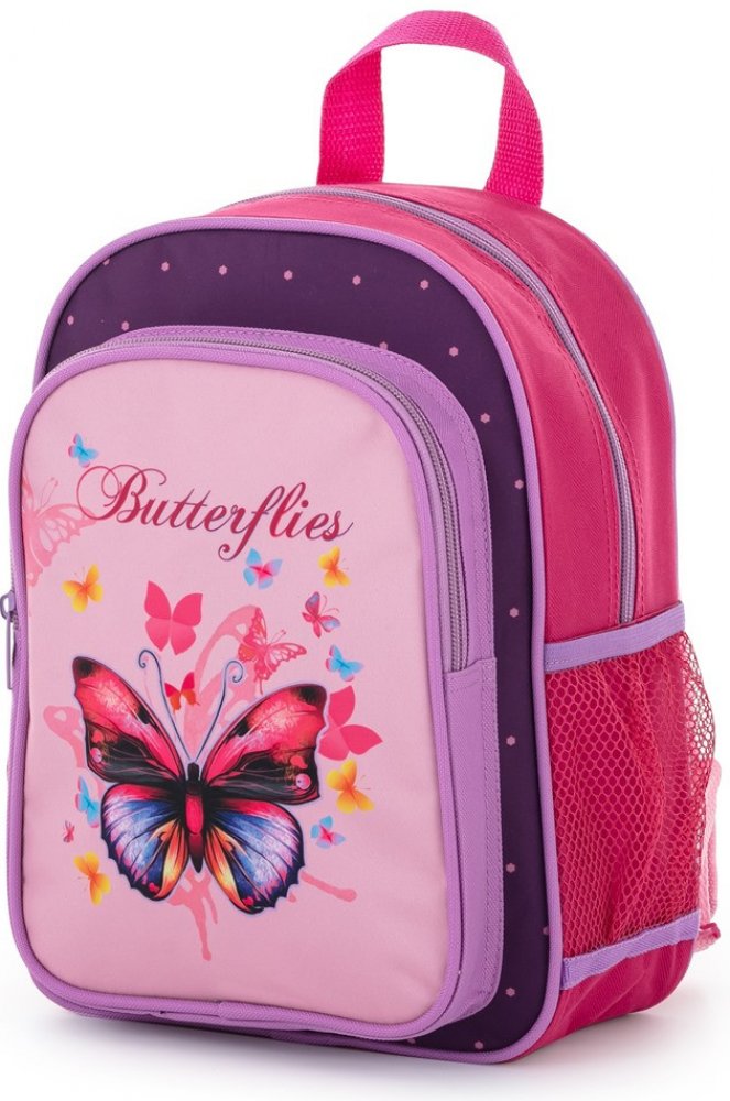 Menší batůžek vhodný pro děti předškolního věku na volnočasové aktivity. Má jednu velkou kapsu, menší kapsu na svačinu a postranní kapsičky na lahev na pití. Ideální pro děti od 3 do 6 let.