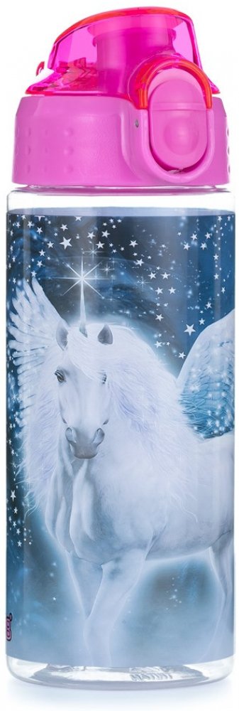 Dětská láhev na pití vyrobená z kvalitního a zdravotně nezávadného materiálu Tritan. Láhev je testována, neobsahuje BPA ani ftaláty. Vrchní část láhve je vybavena zámkem a otevíracím patentem, který funguje na principu změny polohy tlačítka (nahoru = zamčeno, dolů = otevřeno). Díky tomu je láhev snadno otevíratelná a zároveň chráněná proti nechtěnému vylití. Láhev má objem 500 ml, je vhodná do myčky na maximální teplotu 80 °C a je ideální pro děti od 5 let. Praktická šňůrka usnadňuje manipulaci a průměr pítka je 2,5 cm. Upozornění: Láhev není určena pro sycené nápoje.