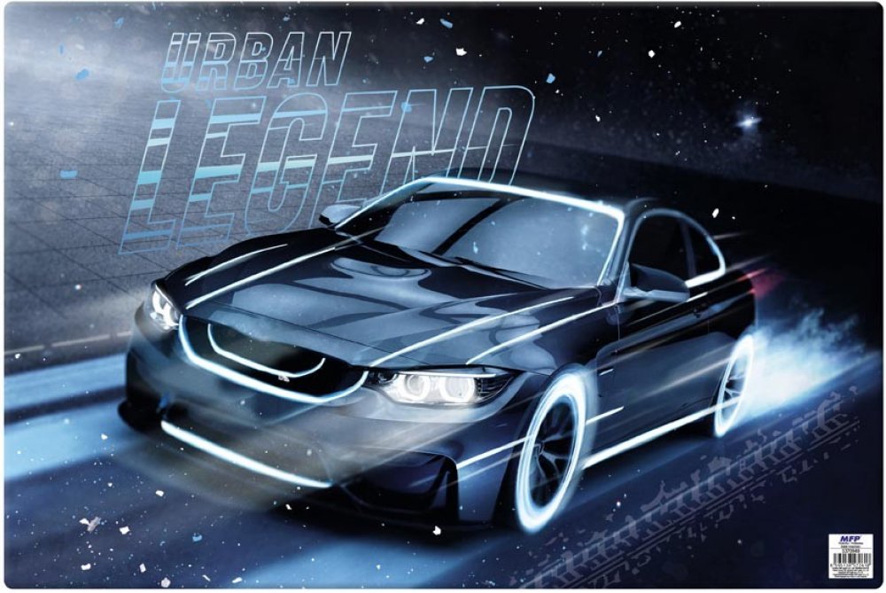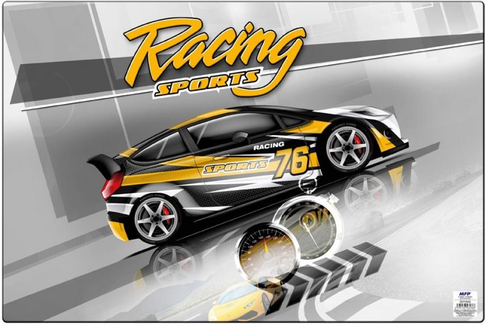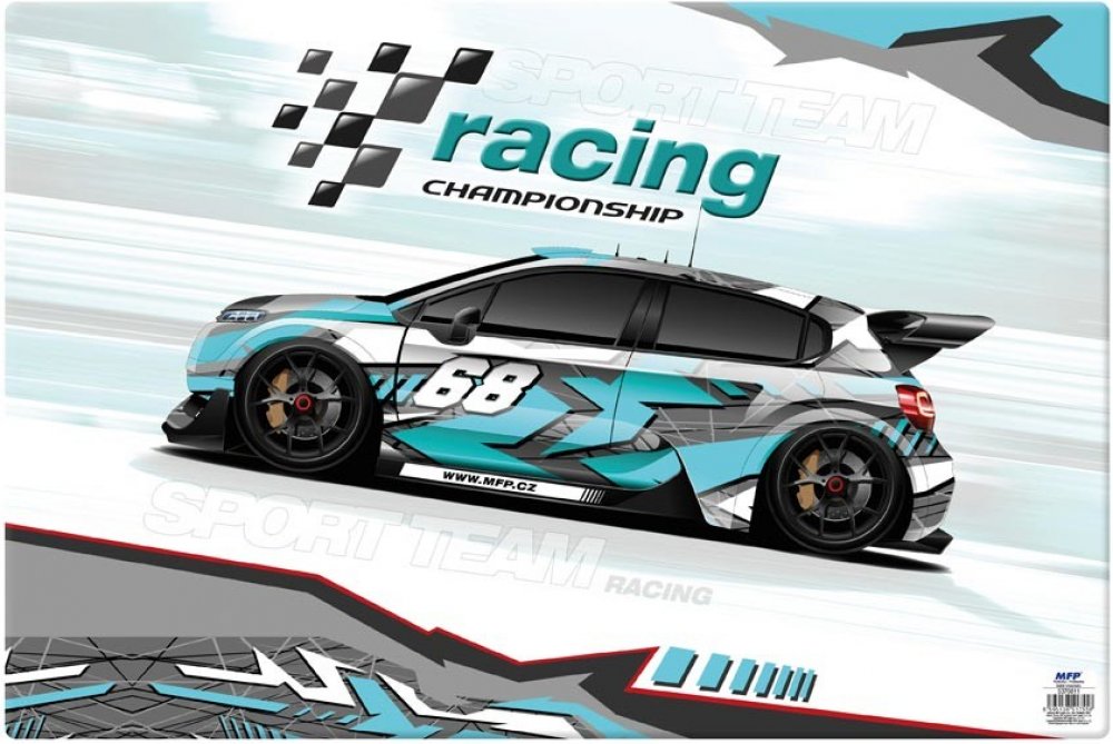 Psací podložka na stůl s obrázkem auta. Slouží jako podklad pod kreslení, modelování a jiné tvůrčí činnosti. Chrání nábytek proti poškození a je praktickým pomocníkem školáka.