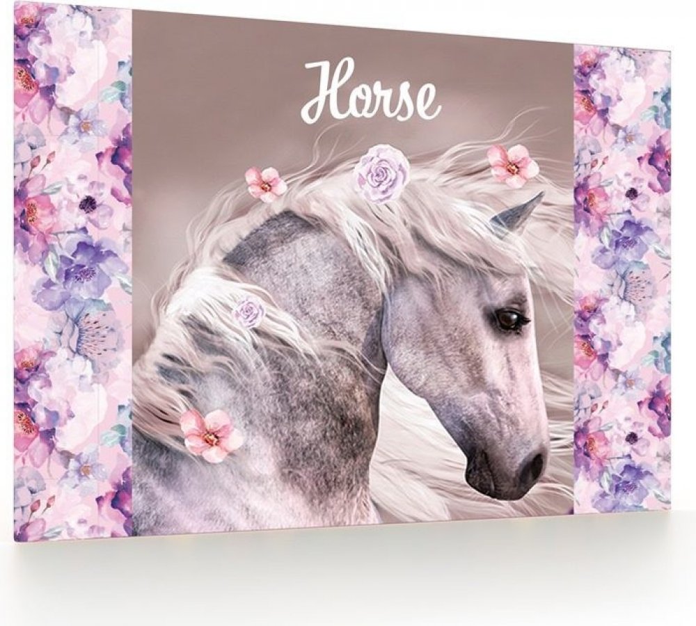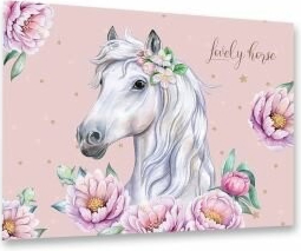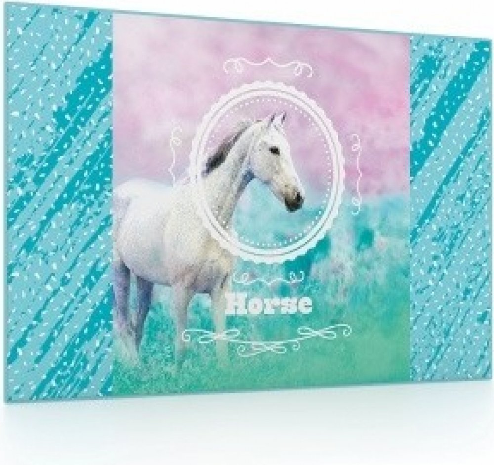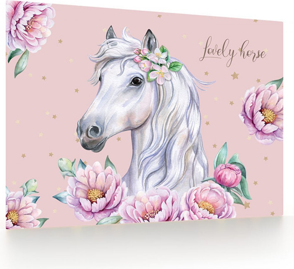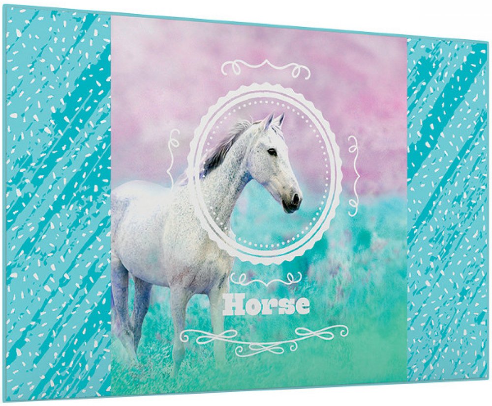 Podložka na stůl v moderním atraktivním designu s motivem romantického koně. Podložka chrání nábytek před poškozením, má omyvatelný povrch a je vyrobená z PVC. Její měkčené provedení zajišťuje komfortní užívání a psaní na podložce. Spodní strana má neklouzavou úpravu.
