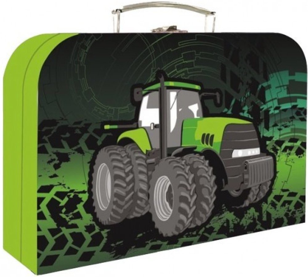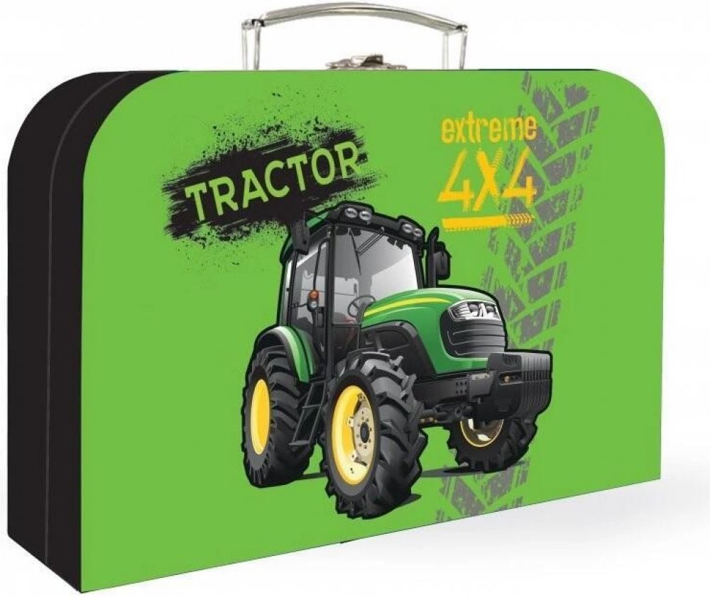 Lamino kufřík na výtvarnou výchovu s motivem traktoru. Do kufříku se vejde formát A4.