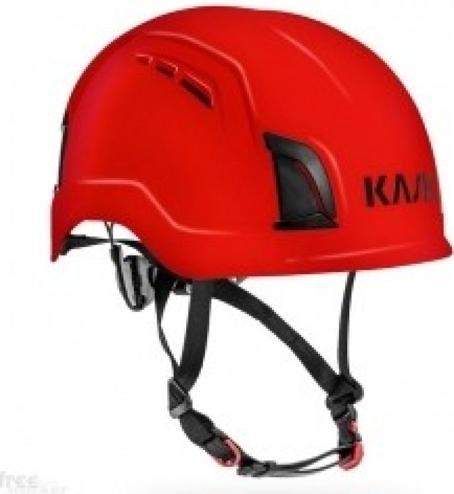 podbradní pásek dle CE EN 12492 - čtyřbodový podbradní pásek se zadním překřížením zajišťuje vysokou stabilitu přilby na hlavě. Bezpečnostní přezka umožňuje rychlé rozepnutí i zapnutí zajišťovacího mechanismu v souladu s normou EN 12492