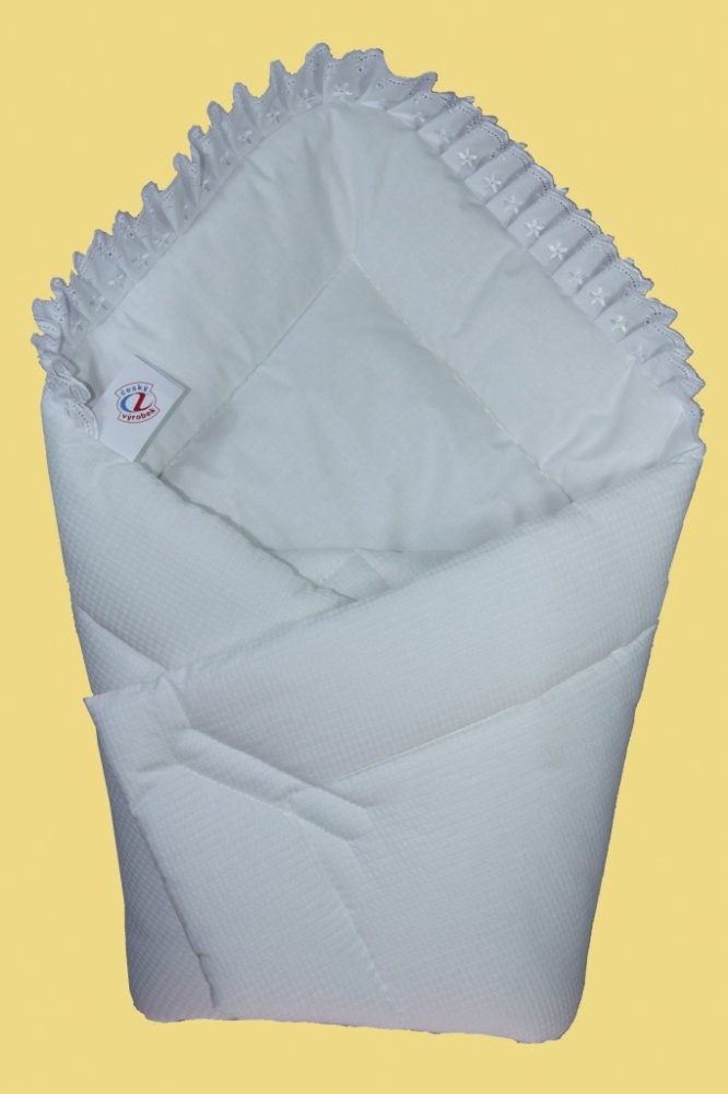 Kojenecká rychlozavinovačka je vyrobena ze 100 % bavlny plátna a vafle (spec. struktura materiálu), plněna je kvalitním tuženým rounem 250g/m2, díky kterému nepotřebujete žádné další výstuhy zad. Zdobená je krajkou. Velikost rychlozavinovačky je 80x80 cm. Je celoprošitá. Barva vafle - bílá. Dejte přednost kvalitě!!