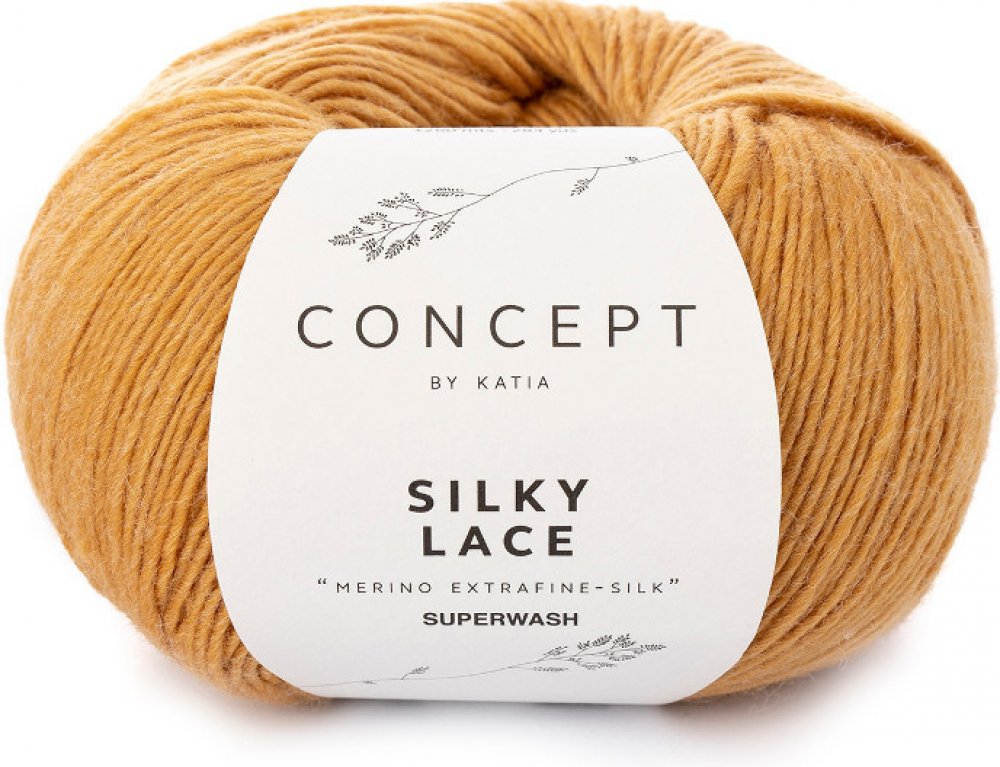 Příze jednobarevná celoroční podzim / zima přírodní, 50 g, doporučené jehlice: 3-3,5, složení: 80% merino 20% hedvábí superwash, fine / sport / 6 ply. Hedvábně lesklá přírodní pletací příze španělské značky Concept by Katia SILKY LACE 167 Ochre ve výjimečné kvalitě.
