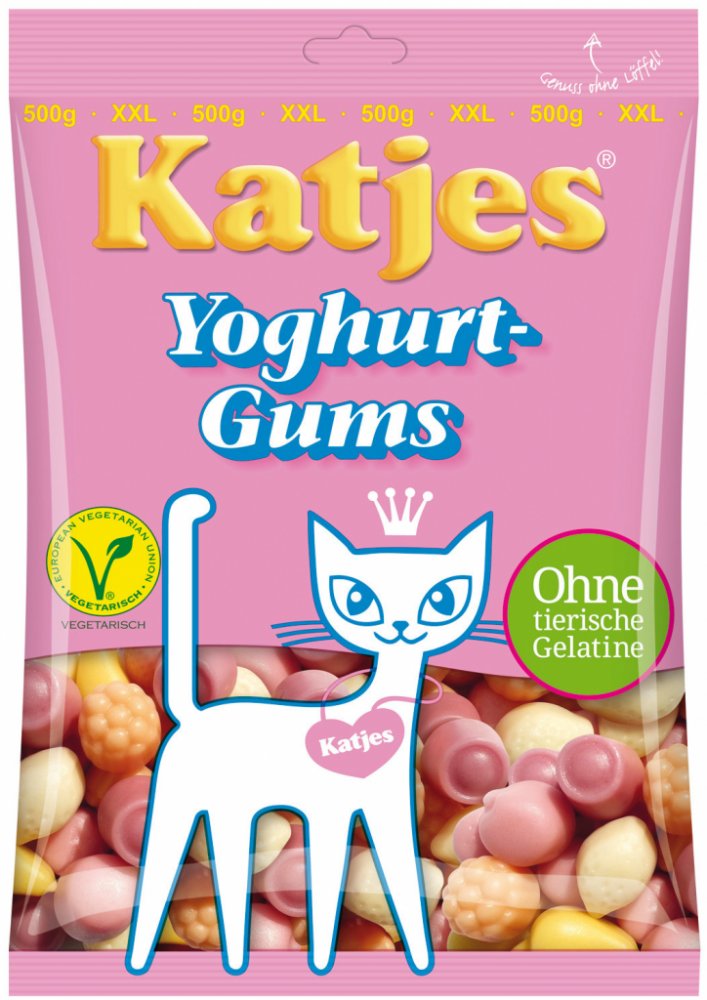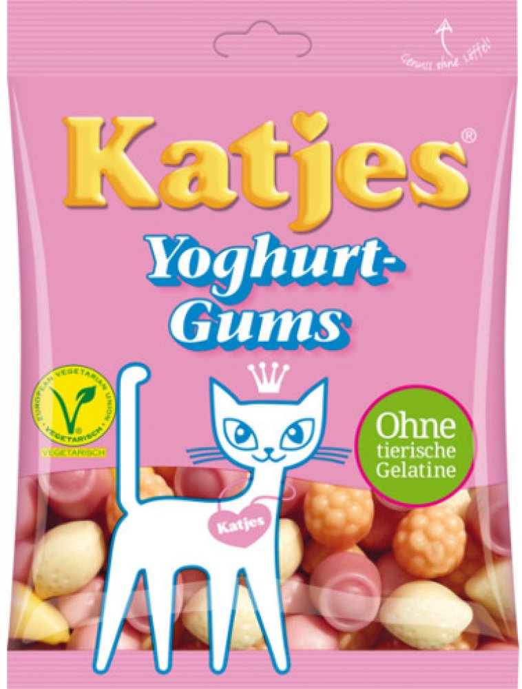 Katjes Yoghurt Gums mají znamenitou chuť čerstvého jogurtu a ovoce (jahody, třešně, borůvky, hrušky, maliny a citróny). Místo želatiny se používá jako želírovací prostředek hodnotný jablečný pektin. Yoghurt Gums® jsou vyráběny bez umělých barviv, obsahují pouze barvící výtažky z ovoce a rostlin. Obsahují také vysoký podíl jogurtového prášku z odtučněného mléka.