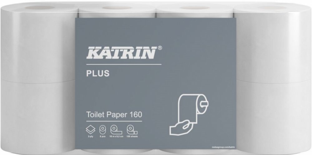 Vysoce kvalitní toaletní papír Katrin Plus 160, 2vrstvý, ze 100 % celulózy. Extra jemný a pevný, speciálně navržený pro hotely. Všechny toaletní papíry Katrin jsou vyrobeny z vysoce kvalitních vláken a testem rozpouštění bylo prokázáno, že se rozkládají během 90 sekund. Rozměry: délka út.115 mm, šířka út. 92 mm, počet útržků 156. Návin 17,90 m. Průměr role 115 mm, průměr dutinky 44 mm.
