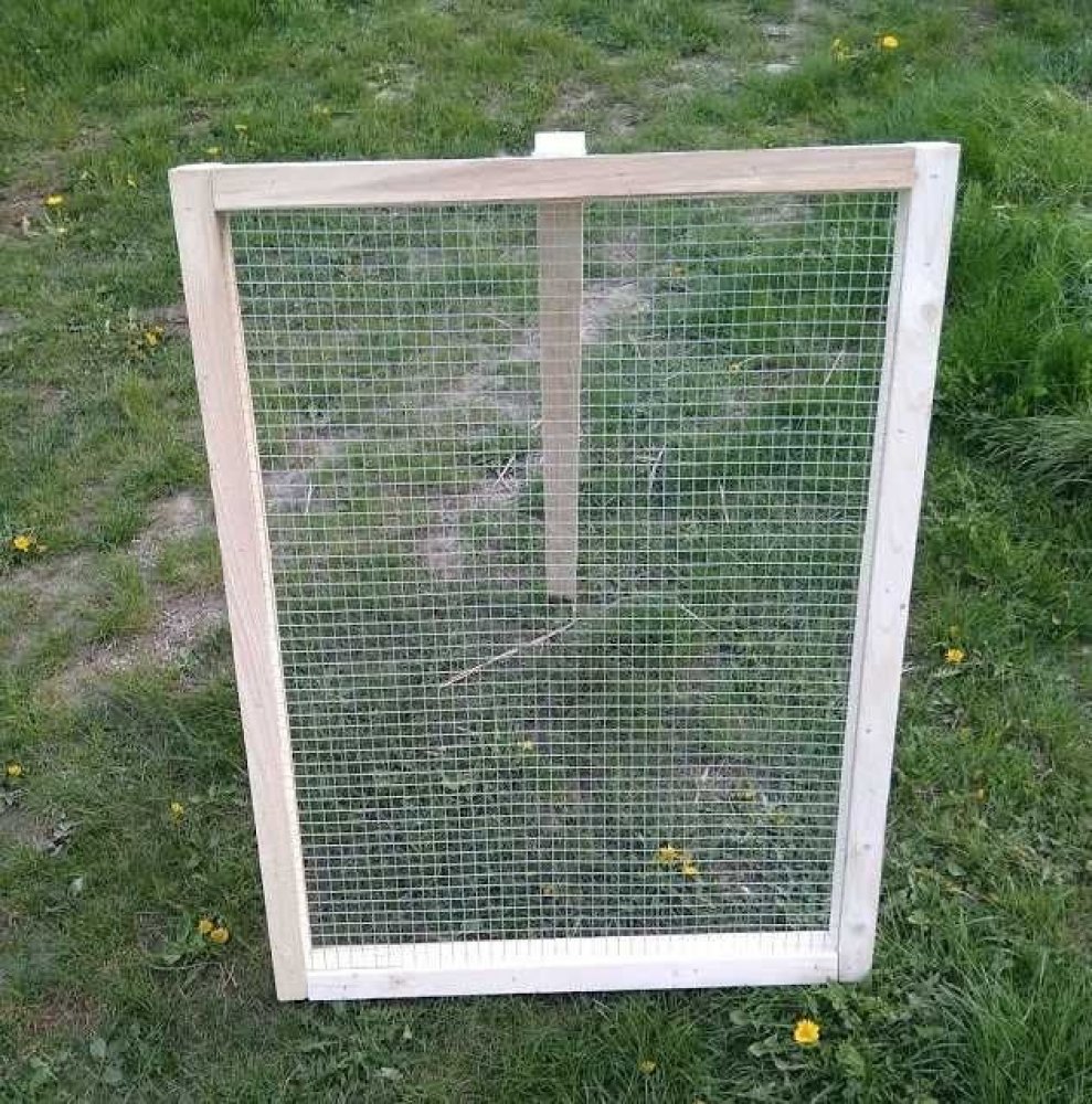 Katrovačka k prosévání hlíny, štěrku, písku, cementu a jiných stavebních hmot.