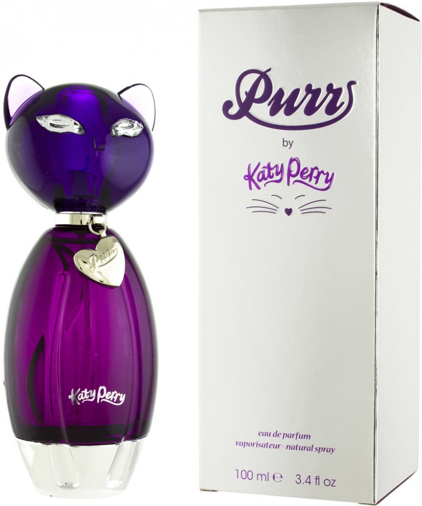 Katy Perry 100 ml dámské parfémované vody květinové pro denní nošení s celodenní výdrží (4-8h) romantické a smyslné Purr 2010 z USA celebrita bambus, broskev, gardénie, červené jablko frézie, jasmín, růže ambra, kokos, orchidej, pižmo, santalové dřevo, vanilka se střední projekcí celoroční kompatibilní s broskví, s jablkem, s jasmínem, s vanilkou Coty klasické TSA kompatibilní (≤100ml) rozprašovač 10 g standardní