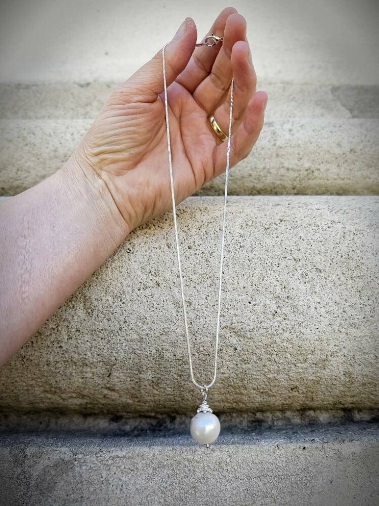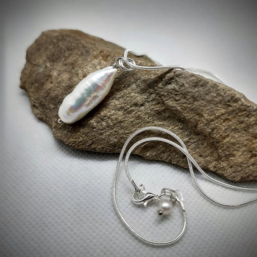 Náhrdelník s říční Biwa perlou. Hodí se na slavnostnější příležitost i běžné nošení. Nádherný šperk. Buďte jedinečná.