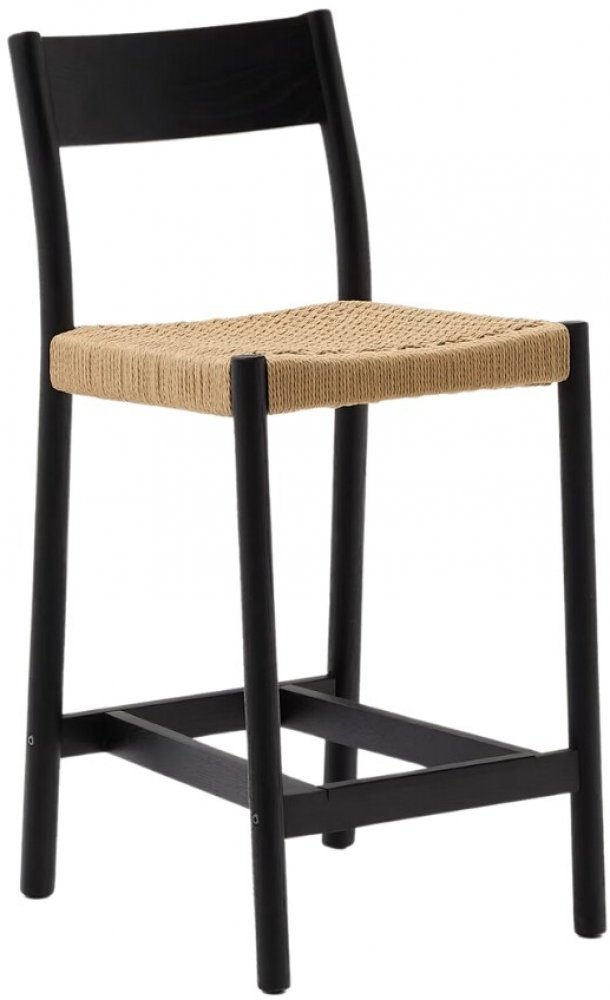 Kave Home Černá dubová barová židle Yalia s výpletem 65 cm