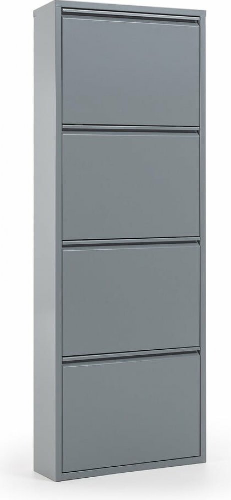 Tento šedý botník Kave Home Rox je štíhlý a zároveň velmi prostorný. Díky vyklápěcímu systému celkem 4 dvířek poskytuje místo pro uskladnění všech vašich oblíbených párů a zároveň nezabírá mnoho místa. Botník je vyroben z odolného kovového materiálu. V zadní části najdete také otvory pro bezpečné upevnění ke zdi. Poznámka: Dvířka se otevírají všechny zároveň.