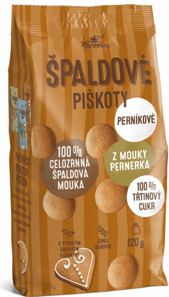Složení: Špaldová mouka celozrnná 34 %, vejce, třtinový cukr 29 %, perníkové koření 3,5 %.