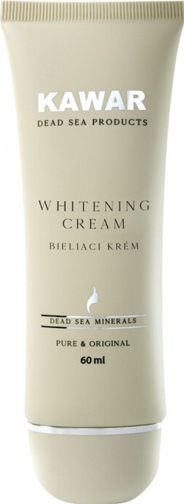 Kawar Bělící krém proniká hluboko do pokožky, zesvětluje ji a zjemňuje. Charakteristika: Kawar Bělící krém obsahuje minerály z Mrtvého moře, UV filtr a přírodní bělící látky na bázi ovocných extraktů. Pleť vyhlazuje a dodává potřebné množství vlhkosti. Kombinace účinných látek zesvětluje jakékoliv pigmentační plochy. Možno použít na obličej i tělo.Obsahuje přírodní extrakt z listů medvědice lékařské, který má velmi účinný bělící efekt. Tato látka je přitom velmi šetrná. V kombinaci s hořčíkem způsobuje intenzivní a déletrvající zesvětlení pokožky a současně funguje jako antioxidant a stimulátor kolagenu. Balení: 60ml