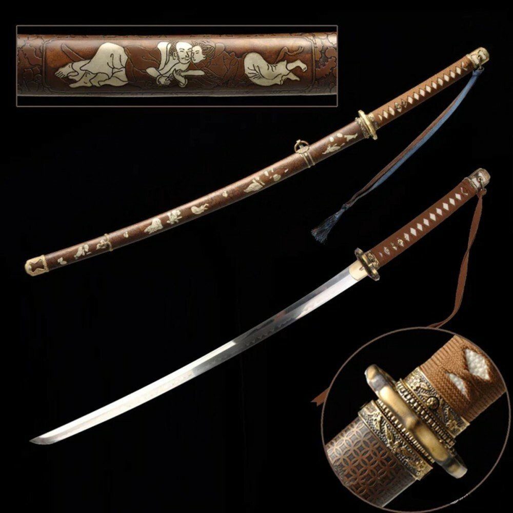 Pouzdro (saya) je vyrobeno z lakovaného kovu s detailními kresbami. Pro pohodlné přenášení je na pouzdru umístěn mosazný kroužek. Komponenty Kashira, fuchi, tsuba, koiguchi a kojiri jsou vyrobeny z masivní mosazi, stejně jako drážkované Habaki.