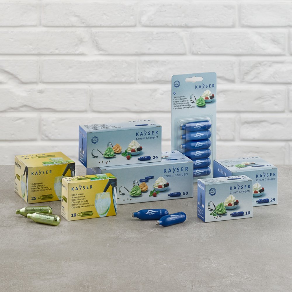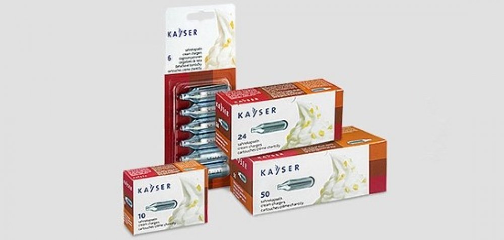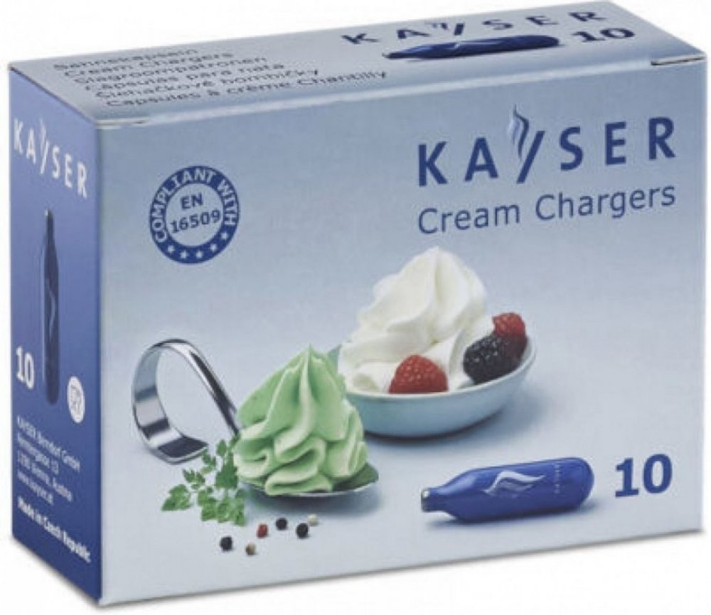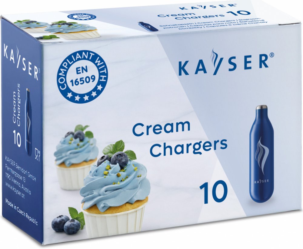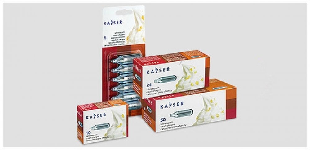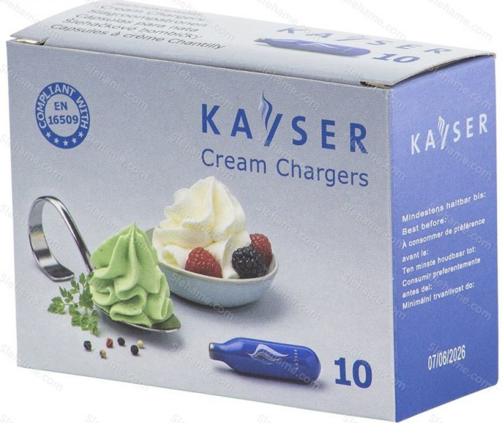Jedna šlehačková bombička Kayser je určena pro nášleh maximálně 0.5 l smetany či jiného obsahu šlehače. Plněno čistým oxidem dusným (N2O) určeným pro potravinářské účely. Vyrobeno v České republice.