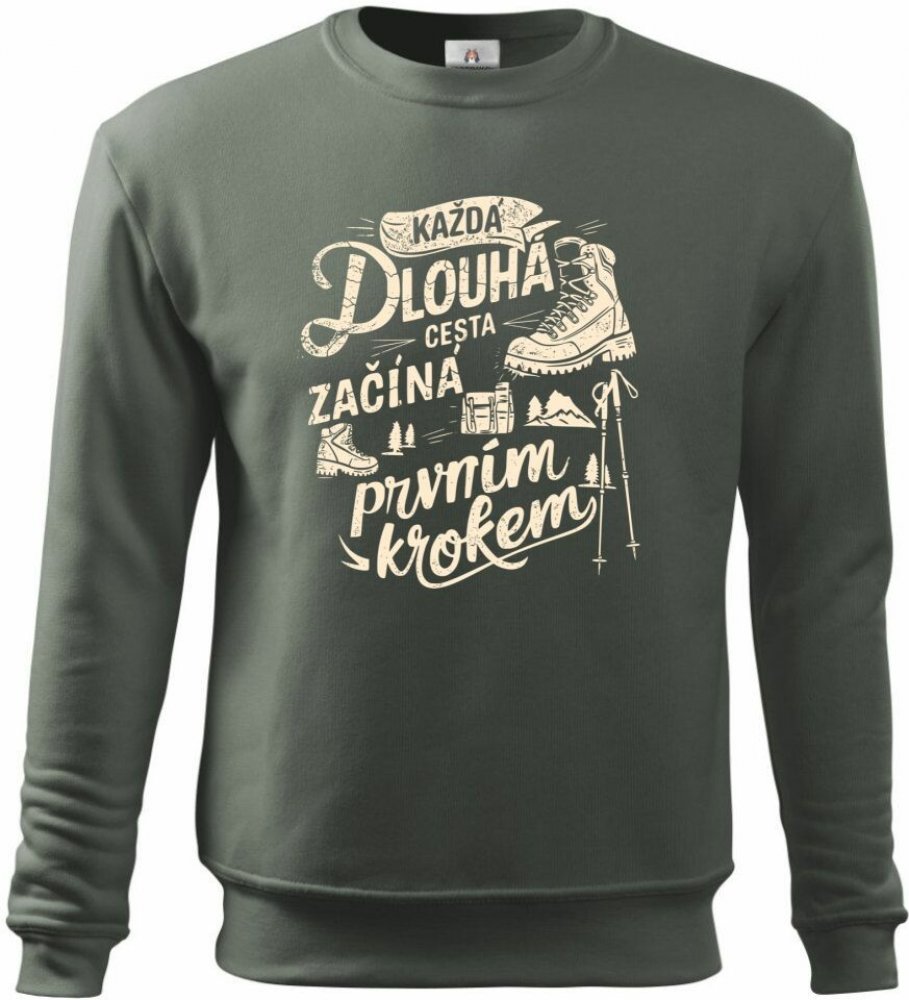 Každá DLOUHÁ cesta začíná PRVNÍM krokem v43 mikina ESSENTIAL