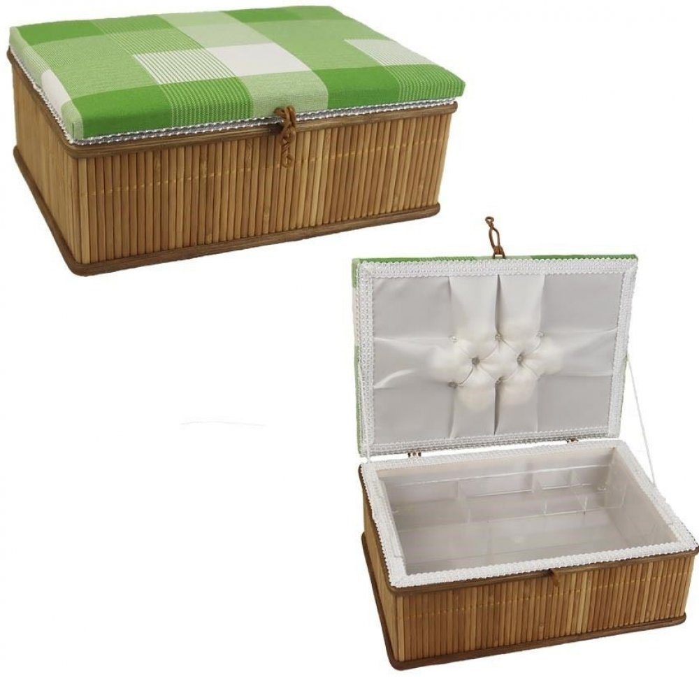 Štípaný bambus, víko-nábytková dekorační látka, kazeta je včetně plastové přihrádky.