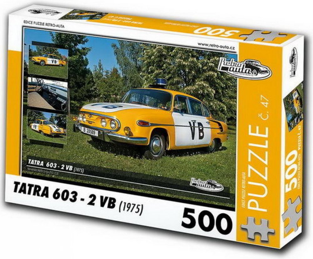 Puzzle č. 47 - TATRA 603 - 2 VB (1975) 500 dílkůRozměry složeného puzzle: 48 x 36 cmMateriál: originál puzzle lepenka o síle 1,5 mmRozměry balení (krabice): 33,5 x 23 x 3,5 cmRozměry jednotlivých dílků: cca 2,2 x 2 cmPočet dílků: 500Puzzle TATRA 603 - 2 VB je sedmačtyřicáté ze sběratelské série EDICE RETRO-AUTA . Puzzle z této edice jsou nejen ideálním dárkem pro všechny automobilové nadšence, ale...