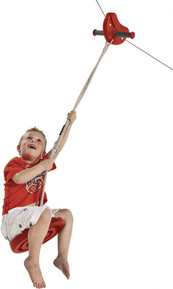 Lanová dráha "Para" červená KAXL Zábavná lanová dráha ve vlastní zahradě potěší všechny malé nadšence adrenalinových zážitků. Pojízdný prvek ze stálobarevného plastu má protiskluzovou rukojeť, která zvyšuje bezpečnost dítěte. Specifikace kryt pojízdného zařízení je vyroben z polyamidu (PA) - tvarovaný metodou vstřikování protiskluzové rukojeti ocelové lanko, napínací mechanismus z pozinkované ocel...