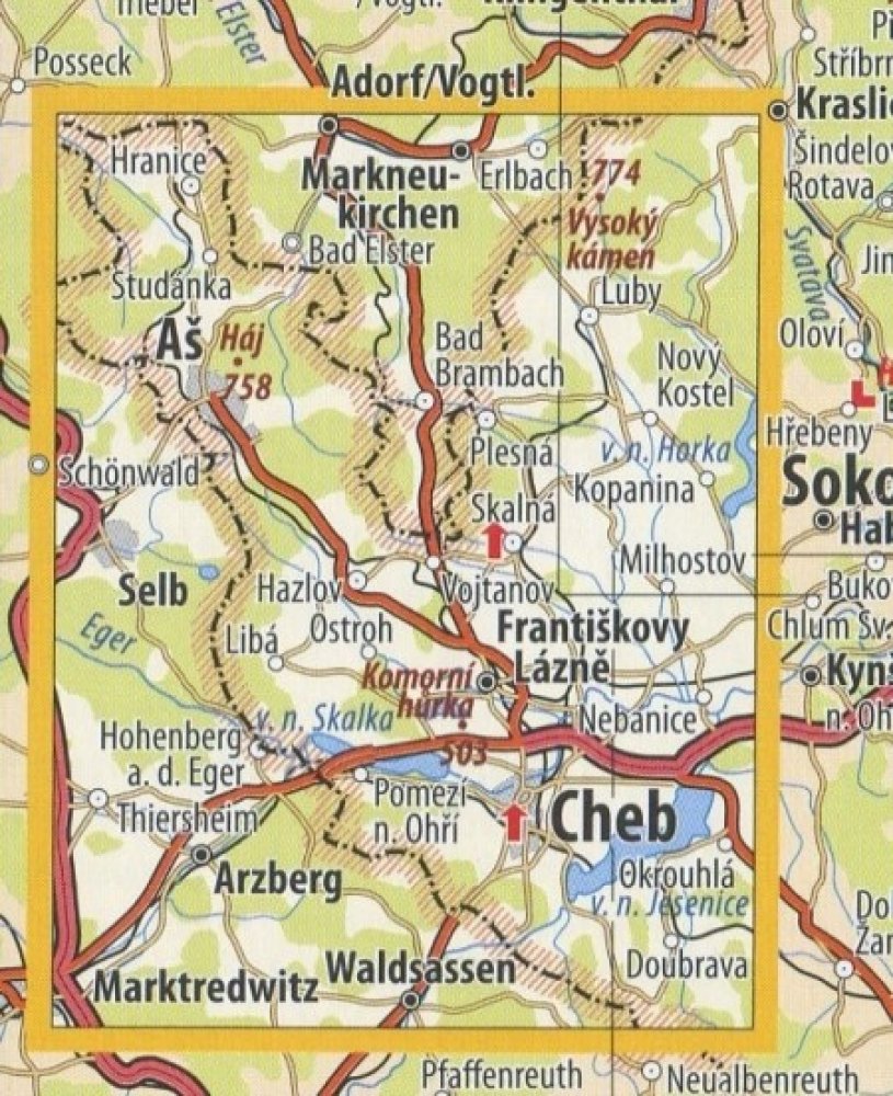 KČT 01 Ašsko a Chebsko - nástěnná turistická mapa 60 x 90 cm Varianta: mapa v dřevěném rámu, Provedení: Ticiago bílý