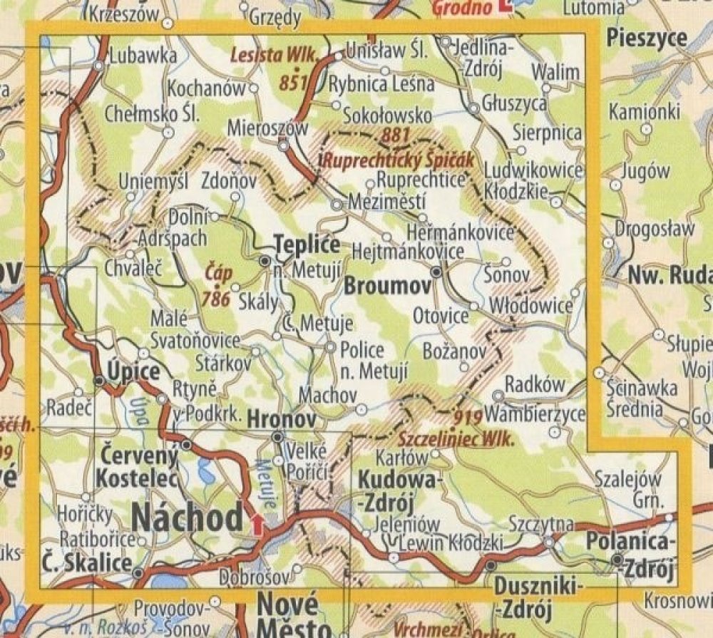KČT 26 Broumovsko, Góry kamienne a Stolowe - nástěnná turistická mapa Varianta: mapa v dřevěném rámu, Provedení: Ticiago černý