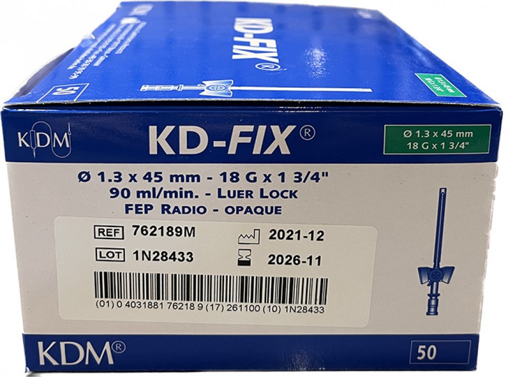 Intravenózní kanyly KD-FIX s portem a křidélky. Slouží k odběru vzorků krve, k podávání léčiv a roztoků. Ventil umožňující průběžné podávání léků. Kanyly jsou barevně odlišeny dle velikostí. Průhledná komora umožňuje snadnou vizuální kontrolu správného vpichu. Určeno na jedno použití. Sterilní.
