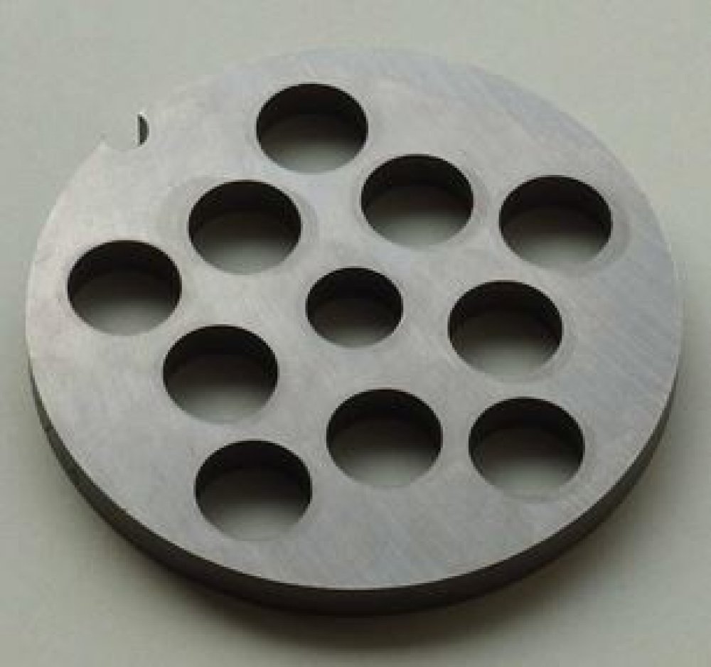Řezná deska pro mlýnek na maso Porkert č. 22. Průměr otvorů je 14 mm. Vyrobeno v ČR.