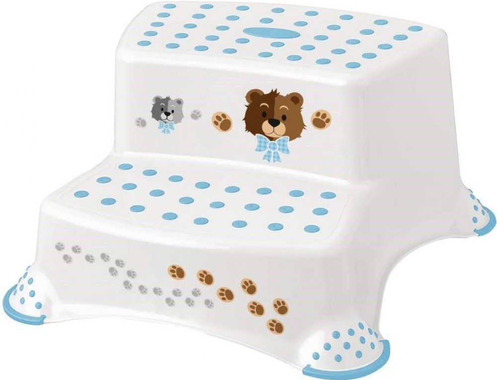 Stolička / dvojschůdek BEARS je možno použít jako sedátko nebo jako stupínek pro děti. Vhodné využití v koupelně či toaletě, kdy dětem usnadní přístup k těžce dostupným místům. Na spodní i vrchní straně stoličky je protiskluzová úprava, takže je stolička bezpečnější. Materiál: plast. Nosnost 120 kg. Rozměry výrobku: 40,5 x 37 x 21 cm.