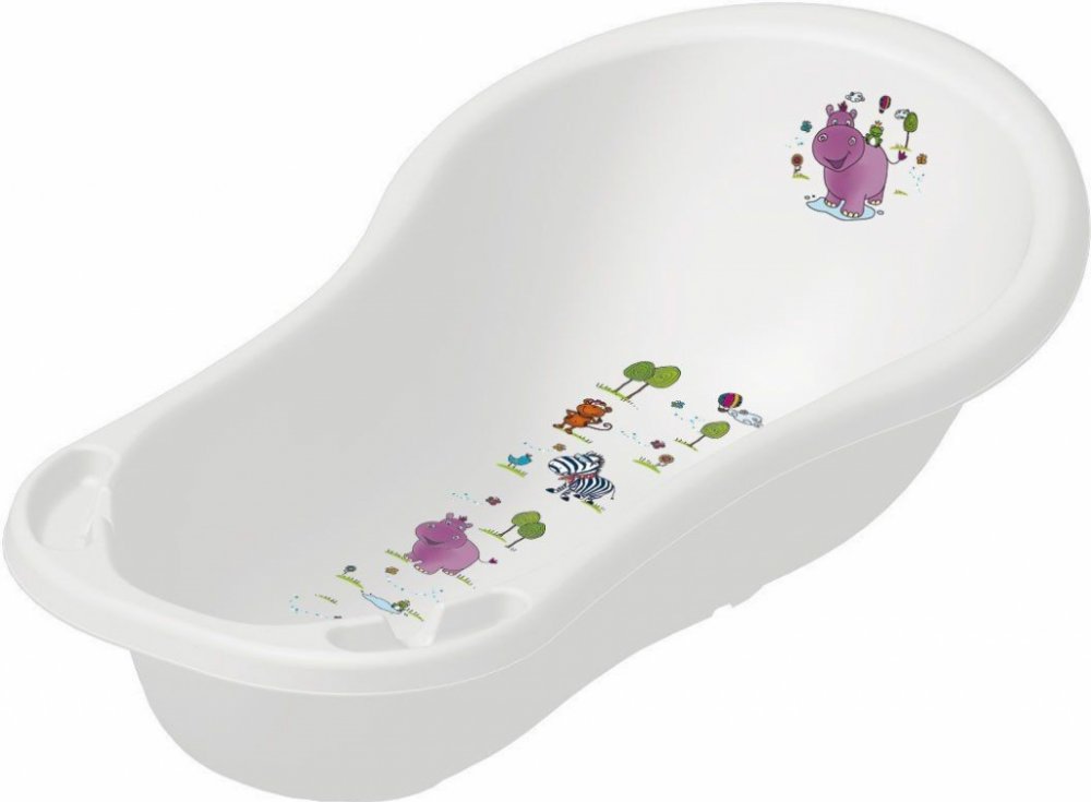 Dětská vanička v bílé barvě s motivem hrocha pro hravé koupání vašeho miminka.