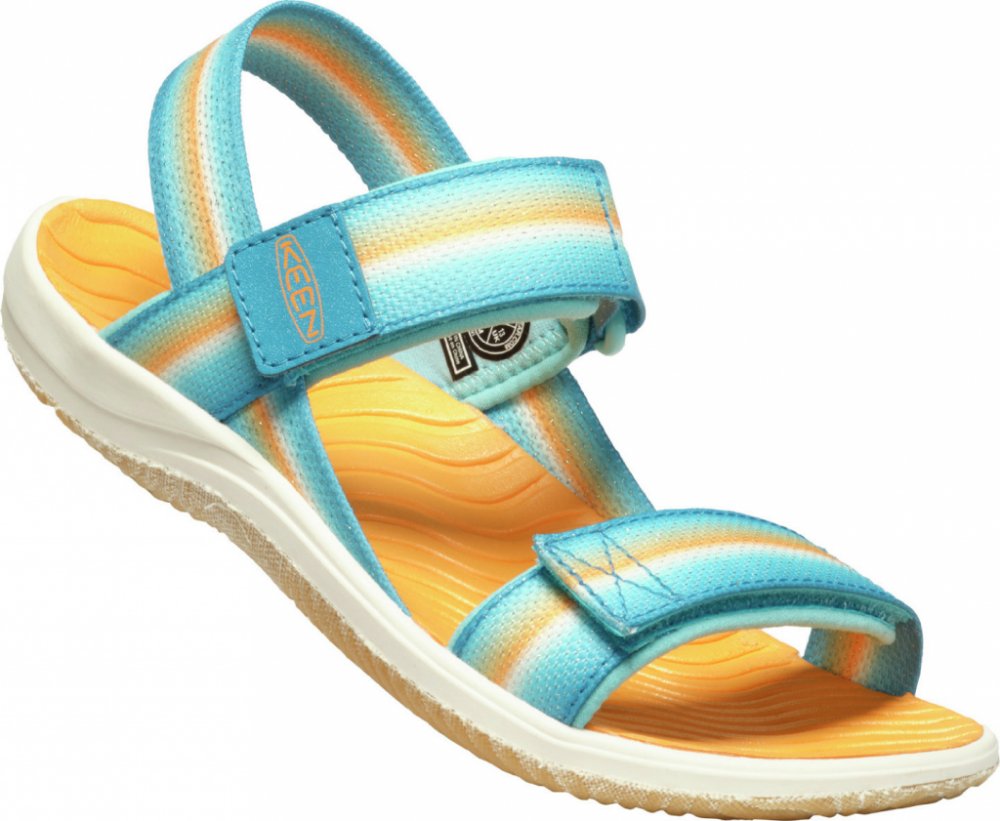 Dětské páskové sandály Keen ELLE BACKSTRAP Y mají rychleschnoucí svršek i podšívku a hodí se pro aktivně strávený volný čas. Díky použitým materiálům se dají bez problémů prát v pračce, což výrazně usnadňuje péči o ně. Pohodlné a bezpečné nošení zajišťují nastavitelné pásky, stélka z materiálu EVA s podporou klenby a nebarvící TPR podešev s vyšší přilnavostí.