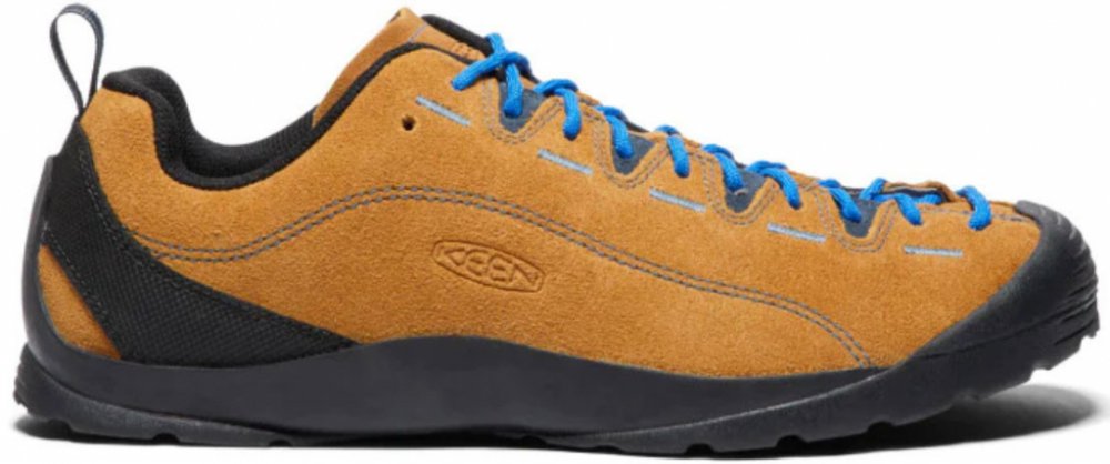 Outdoorový hybridní model Keen Jasper, který v sobě spojuje funkčnost nástupových bot a design městských tenisek. Bota je určena především do města a lehkého terénu. Svršek je vyroben z ekologicky certifikované semišové kůže s lehkou síťovanou podšívkou na vnitřní straně. Systém šněrování od jazyku ke špičce nezapře inspiraci lezečkami. Mikroplísně a zápach uvnitř boty potlačuje technologie ECO ODOR CONTROL šetrná k životnímu prostředí. Bota má vyjímatelnou vložku z polyuretanu a je osazena nízkoprofilovou gumovou podešví, která vpředu přechází do subtilně vytvarované ochrany prstů.