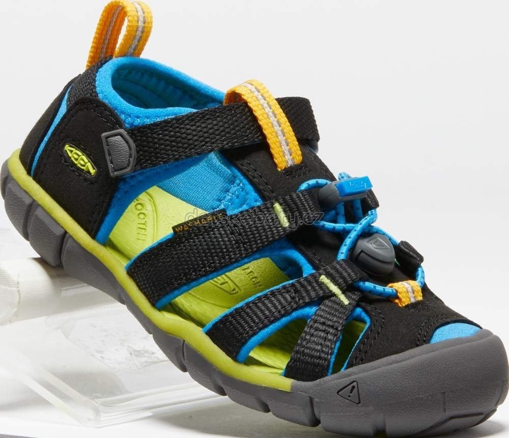 Ultralehký sandál upoutá nejen svým krásným designem, ale především svojí univerzálností použití. Poslouží dobře jak při městském nošení, tak při vodních aktivitách. Díky kvalitní gumové podešvi umožňuje bezpečnou chůzi i v lehkém terénu. Svršek je vyroben z PES popruhoviny. Rychleschnoucí podšívka je ošetřena kvalitní, přírodní, antibakteriální technologií Cleansport NXT, výrazně redukující zápach v botách. Anatomicky tvarovaná stélka z EVA materiálu pomáhá k odpružení kroku. Elastické rychlozavazování je u velikostí KIDS doplněno páskem přes nárt na suchý zip. Nechybí ani velmi užitečná patentovaná ochrana prstů. "