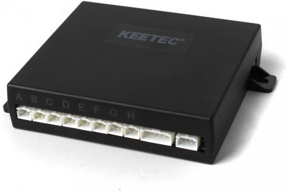 Parkovací asistent Keetec s 8 snímači bílé barvy, s jednou řídicí jednotkou, určený pro instalaci do předního a zadního nárazníku vozidla doplněn o LCD displej s číselným ukazatelem pro komfortní vizuální signalizaci vzdálenosti od překážky. Řídící jednotka umožňuje nastavení inteligentní učící funkce, citlivosti ve dvou úrovních a Antihook (posunutí snímání o 20 cm.