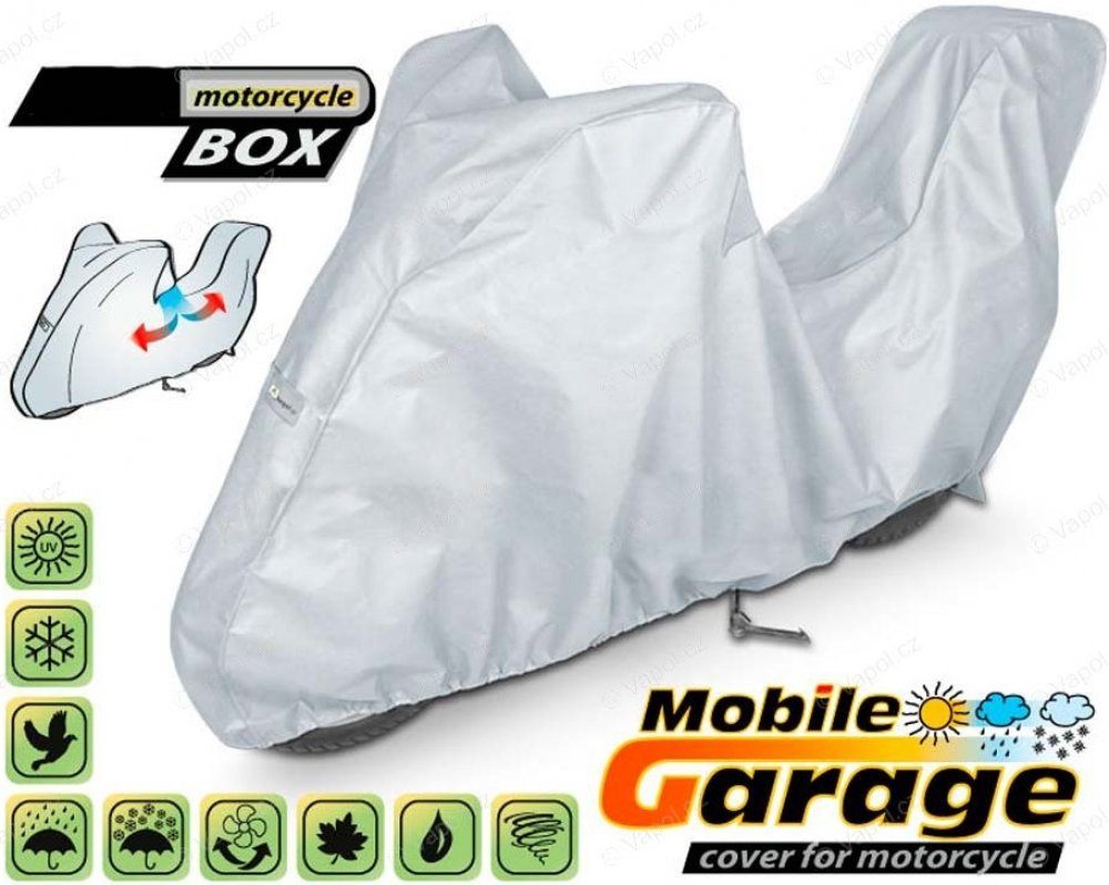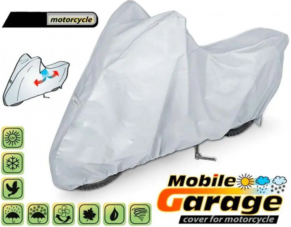 Plachta na motocykl , velikost XL, nepromokavá, proti prachu a znečištění. Tato plachta umí odvádět nežádoucí vlhkost z pod plachty. Snadné je i její nasazení a sundání. Speciální třívrstvá nepromokavá konstrukce plachty je zároveň paropropustná a při dešti je téměř 100% nepropustná. Plachta chrání před deštěm, UV zářením, prachem, ptačím trusem, kroupami, sněhem a námrazou. Snadno upevní pomocí š...