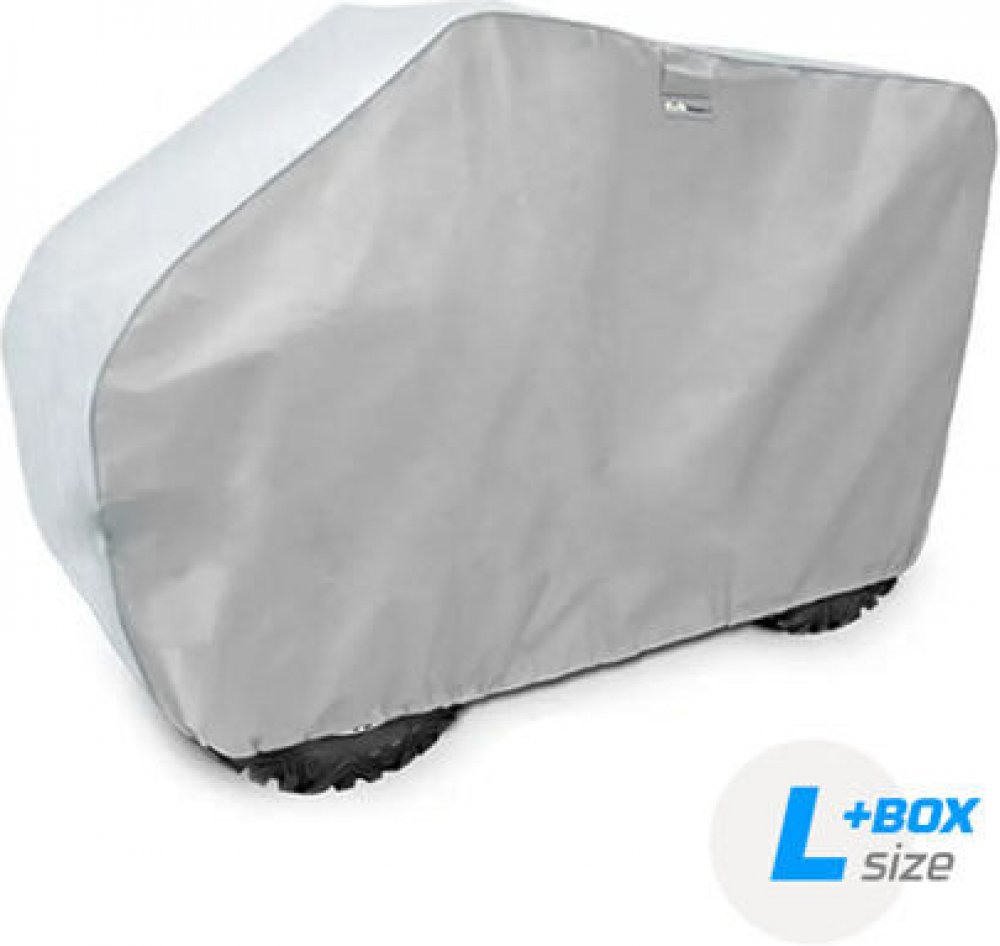 Vysoce kvalitní, voděodolná a paropropustná plachta na čtyřkolku (mobilní garáž).Vhodná pro skútr o délce 180–215 cm, s výškou řídítek do 125 cm a šířkou řídítek do 120 cm, lze použít s boxem (kufrem).