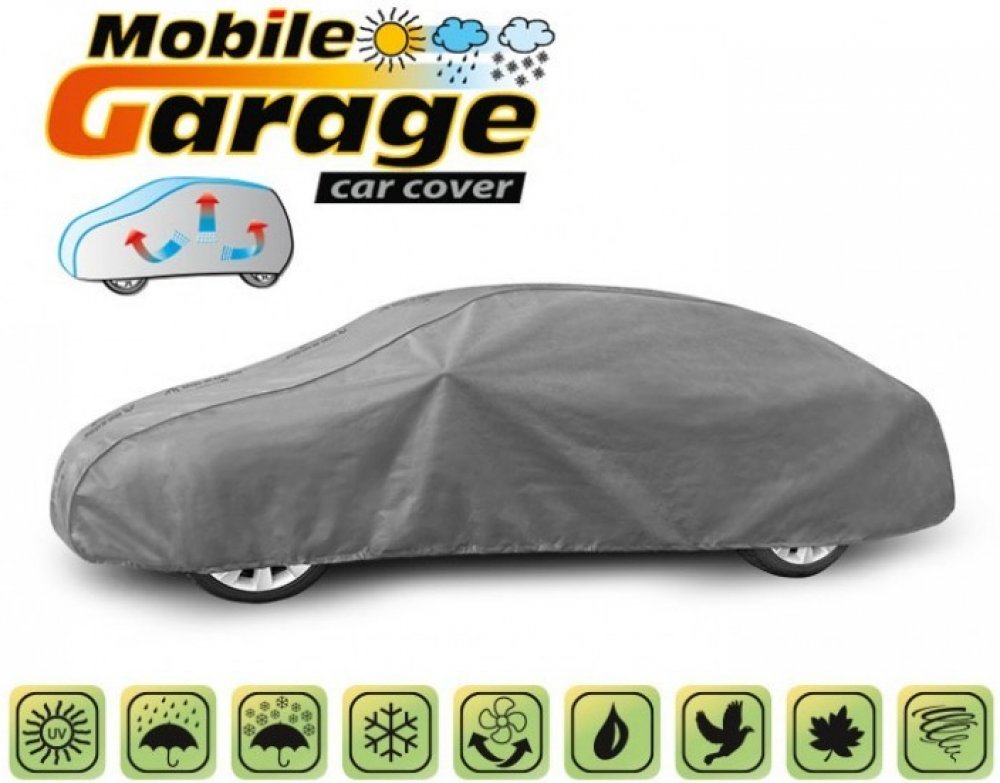 Při výběru plachty doporučujeme řídit se především tvarem a délkou auta. Nápovědou je fotografie zachycující tvar auta, na který se hodí potah - porovnejte tvar svého auta s fotografií výrobku. Dalším krokem je změření vašeho auta, obzvláště se zaměřte na jeho délku. Podstatným rozměrem je obvod auta, který se měří ve výšce nárazníku. Obvod auta nemůže překračovat rozměr uvedený v popisu plachty - musí být o něco menší nebo stejný. Textilní materiál, z něhož je plachta vyrobena, se přizpůsobí jak o něco menšímu, tak i většímu autu podobného tvaru, s rozměry nepřekračujícímu výše uvedený obvod.Nejvyšší kvalita za opravdu nízkou cenu!Vysoce kvalitní plachty na auto MOBILE GARAGE - voděodolné a paropropustné. Jsou ušité z třívrstvé, nepromokavé paropropustné membrány a nesnadno promokavých materiálů, které velice dobře propouštějí páru, zachovávají si téměř naprostou těsnost a zároveň odvádějí vlhkost hromadící se pod potahem. Chrání celé auto společně s jeho dolní částí před škodlivým vlivem prostředí. Jsou odolné vůči působení UV záření. Upevňuje se s pomocí stahovacího lemu s lankem kolem celého vozidla, v případě správného zavázání zaručuje bezpečnost i během nárazů větru. Díky širokému spektru tvarů a barev jsou potahy dobře přizpůsobeny různým automobilům. Poskytovaná záruka 24 měsíců vám dá jistotu, že si kupujete výrobek nejvyšší kvality.Vícesezónní výrobek, jehož funkčnost oceníte v každém ročním období. Během zimní sezóny zabraňuje usazování sněhu, námrazy a ledu a je odolný proti přimrznutí, na podzim chrání před deštěm, větrem, listím, šťávami ze stromů, na jaře a v letním období ochrání před UV zářením, pylem rostlin a před ptačími exkrementy. Potah vašemu autu zajistí jedinečnou ochranu a vám velké pohodlí. Nebudete muset každý den ze svého vozidla odklízet sníh - stačí ho setřepat z plachty, nebudete muset škrábat skla, abyste zlikvidovali na nich se usazující námrazu; sníží se frekvence mytí auta, protože zůstane déle čisté; během veder bude v autě pano