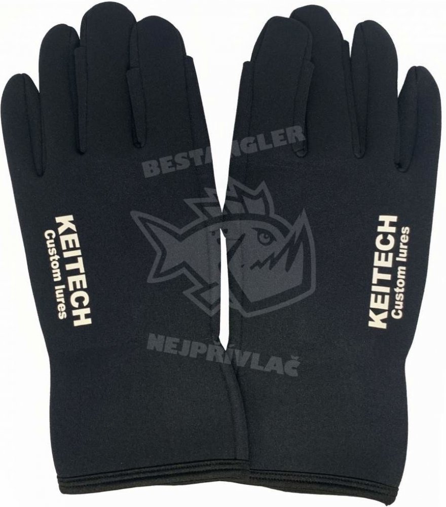 Zimní rybářské neoprénové rukavice KEITECH. Rukavice jsou vyrobené z 1.2 mm tlustého neoprenu. Palec, ukazováček a prostředníček je možné v případě potřeby vyndat. Rukavice u těchto prstů nejsou pouze prořízlé - neopren ze špičky prstu je prodloužený dovnitř, takže vám rukavice vždy krásně zakrývají celý prst. Japonské velikosti L - LLL. L odpovídá evropskému M (menší ruce). LL odpovídá evropskému L (nejběžnější velikost). LLL odpovídá evropskému XL (velké ruce). Rukavice jsou elastické, takže se ruce dobře přizpůsobí.