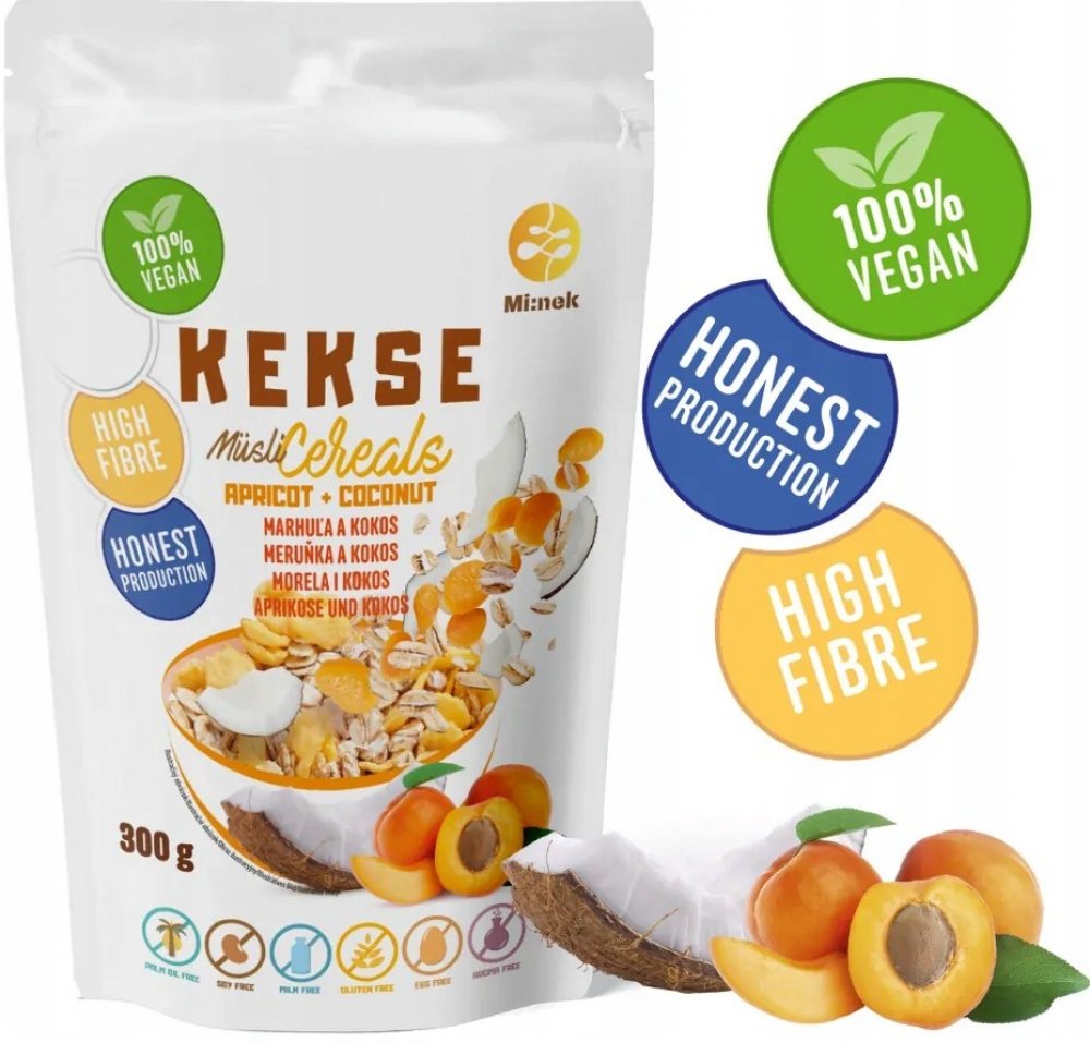 Kekse cereálie meruňka a kokos jsou lahodná směs, která potěší svou jemnou ovocnou chutí a křupavou strukturou. Prémiové ovesné vločky a křupavé kukuřičné lupínky tvoří základ, který doplňují sladké kousky meruněk a voňavé kokosové chipsy. Výsledkem je svěží a harmonické müsli, které je přirozeně bezlepkové, vegan a neobsahuje lepek, mléko, sóju, palmový olej, vejce ani aromata.