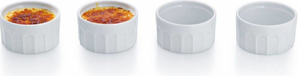 Nádherné porcelánové misky na creme brulée. Misky jsou velice kvalitně vyrobeny a moc hezky vypadají. Hodí se i na jiné použití a tudíž jsou velice univerzální. Objem jednotlivých misek je 150 ml, měřeno malý kousek pod okrajem. Mně osobně se velice líbí a velice dobře se používají. M.F.