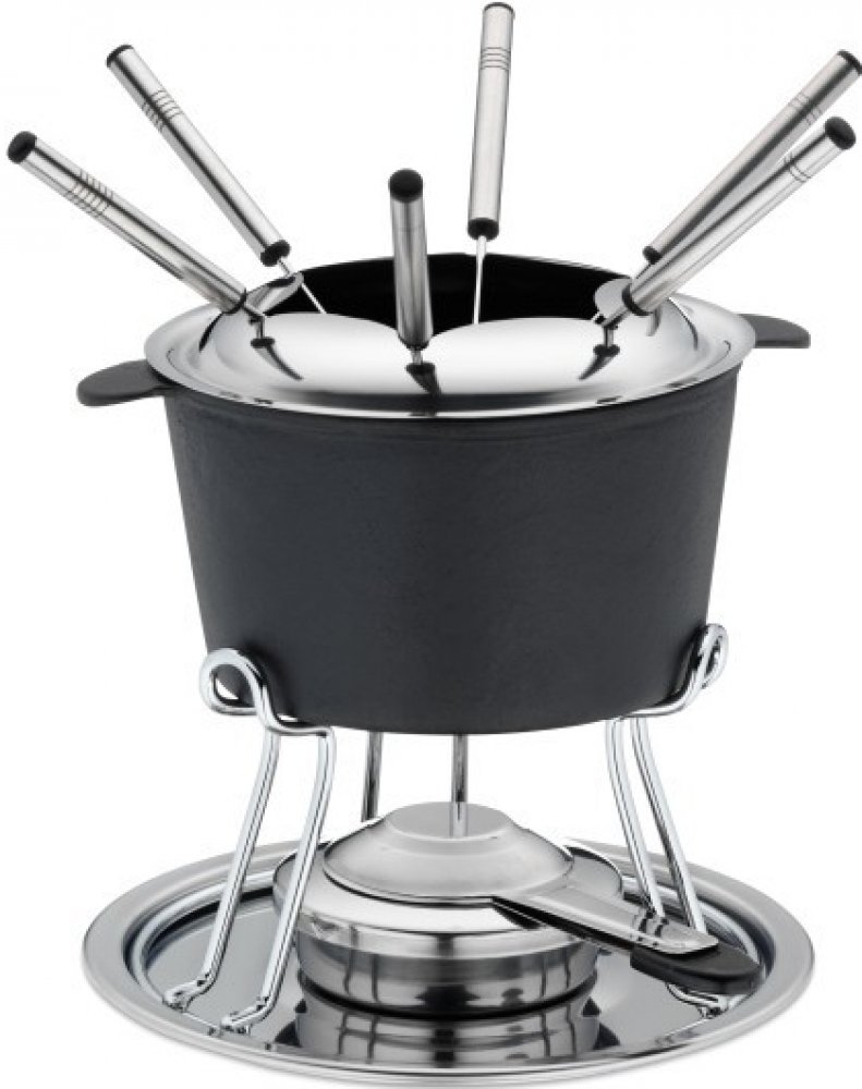 Fondue set COMORE z pravé litiny a nejkvalitnější nerezové oceli je vynikající pro přípravu a stylové podávání čokoládového nebo masového fondue