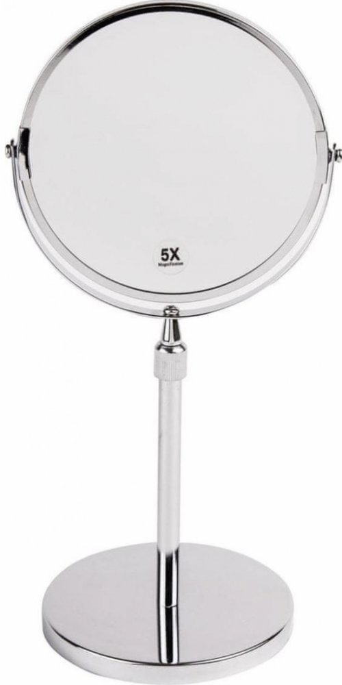 Elegantní zrcátko s podstavcem je oboustranné a nabízí 1násobné a 5násobné zvětšující strany pro zobrazení i těch nejmenších drobností.