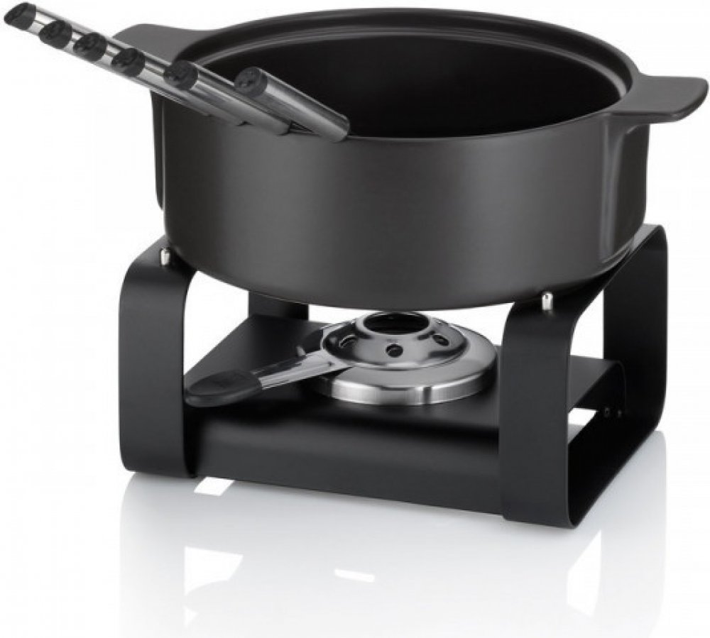 Sada římského sýrového fondue zajistí příjemný večer, kdy se na chvíli zastaví čas. Díky 9dílné výbavě sady na sýrové fondue je postaráno o vše, co potřebujete pro klidný večer s tím nejlepším jídlem. Se svým nadčasovým designem a kvalitním zpracováním je sada římského sýrového fondue ideální jak pro slavnostní rodinná setkání, tak pro pohostinný večer s přáteli. Matně černý sýrový fondue set Roman je dlouhý 29 cm, široký 22,5 cm, vysoký 19 cm a má průměr 22,5 cm. Hrnec na sýrové fondue má objem 1,75 l. Skládá se z: 1 pánve na sýrové fondue černá ohnivzdorná keramika 22,5 cm 1 rechaud 22x17 cm, výška 10 cm 1 hořák na pastu 6 vidliček na sýrové fondue nerez nerez se švýcarským křížem