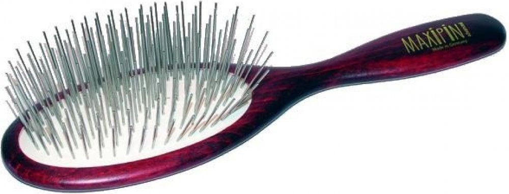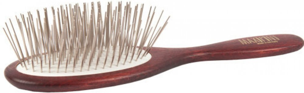 Kvalitní kartáč na psy jehož rukojeť je zhotovena z bukového dřeva. Kartáč je vybaven gumovým pneumatickým polštářem a kovovými kolíčky délky 35 mm se zakolacenými hroty. Povrch je lakovaný v odstínu palisandr. Výroba v Německu, jedná se tedy o kvalitní produkt.