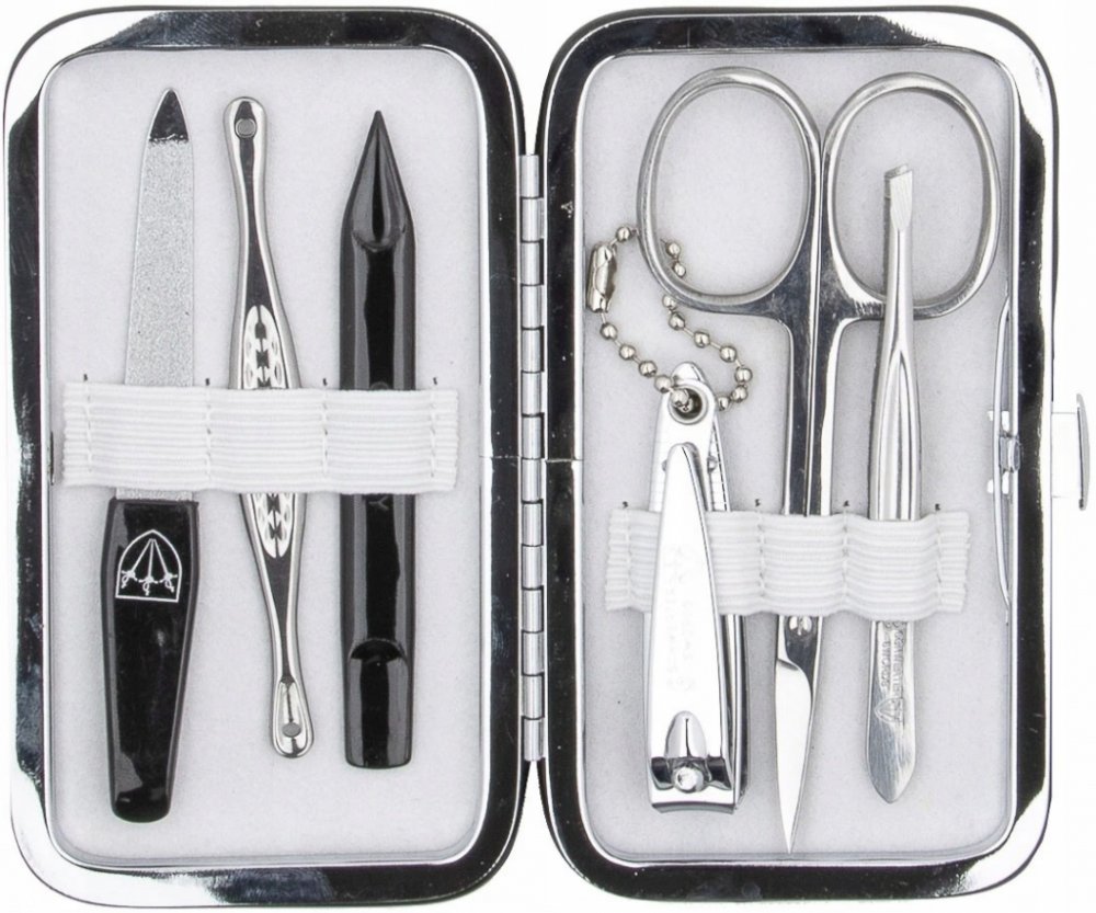 - složení: 1 x šikmou pinzetu, 1 x nůžky na nehty, 1 x kleštičky/štipky na nehty, 1 x pilník, 2 x manikúrní nástroj