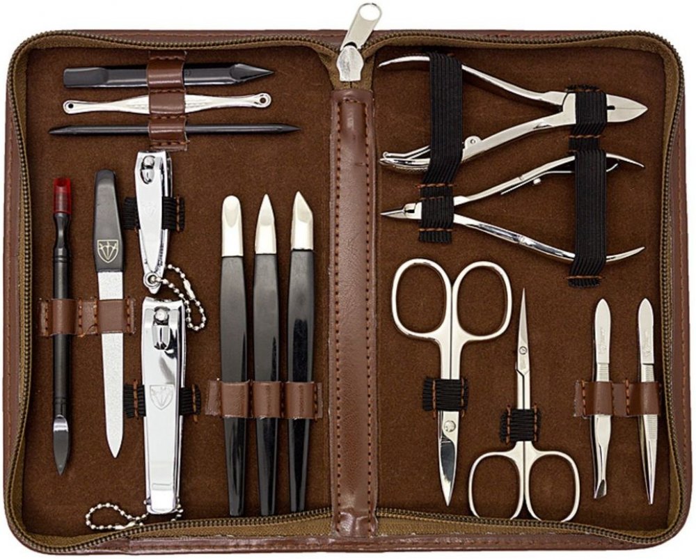 Tato velká sada na manikúru a pedikúru je bohatě vybavena a obsahuje vše, co potřebujete pro dokonalou domácí péči, která vám pomůže udržovat vaše nehty krásné a zdravé.16dílná sada je vybavena nástroji z kvalitní poniklované oceli od německého výrobce Kellermann. Nástroje jsou uloženy v hnědém pouzdru ze syntetické kůže s hladkou povrchovou úpravou a zavíráním na zip.Jednoduchý a elegantní design...