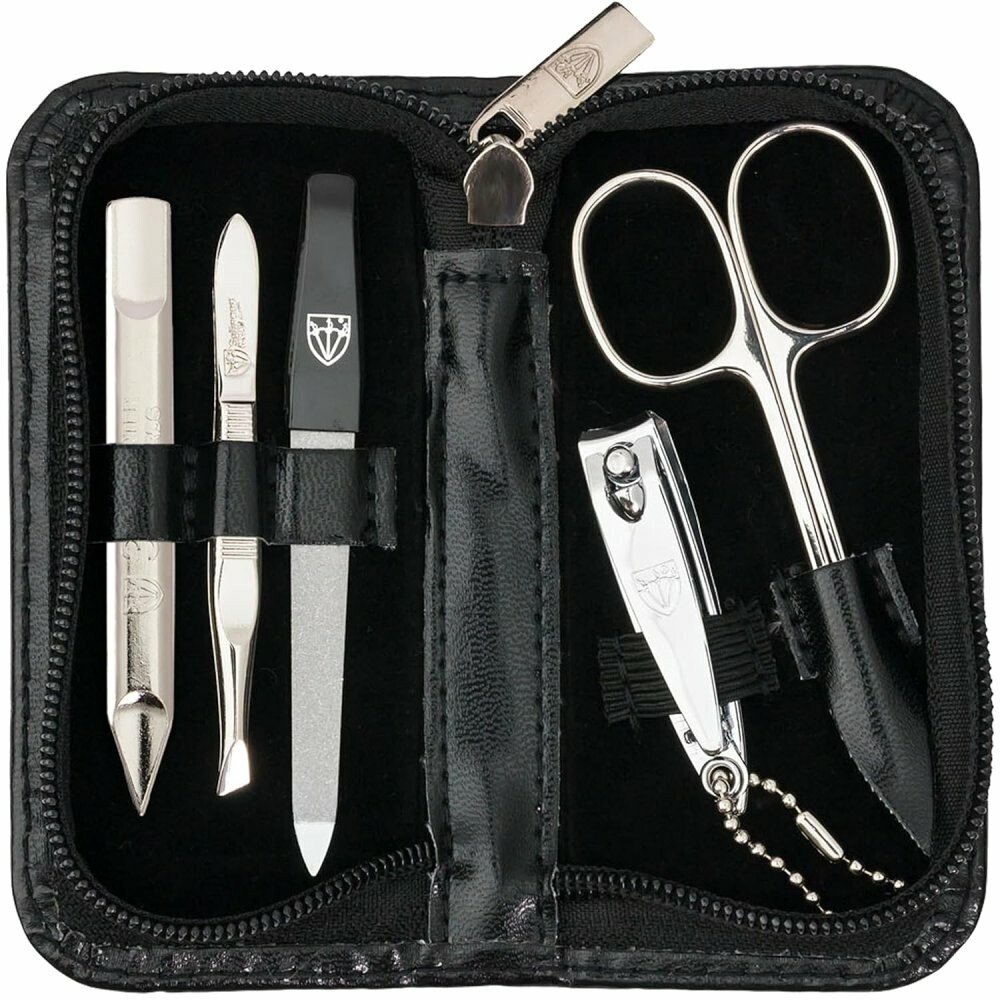 Pánská manikúra 5-ti dílná sada 5212 MC N černá Manikúrní 5-ti dílná sada vyrobená v Německu pod značkou Kellermann Drei schwerter. (Tři meče) Tato sada je vhodná pro každodenní používání a obsahuje: Kombinované nůžky na nehty i na kůžičku 9 cm strong style="font-size: 14px;