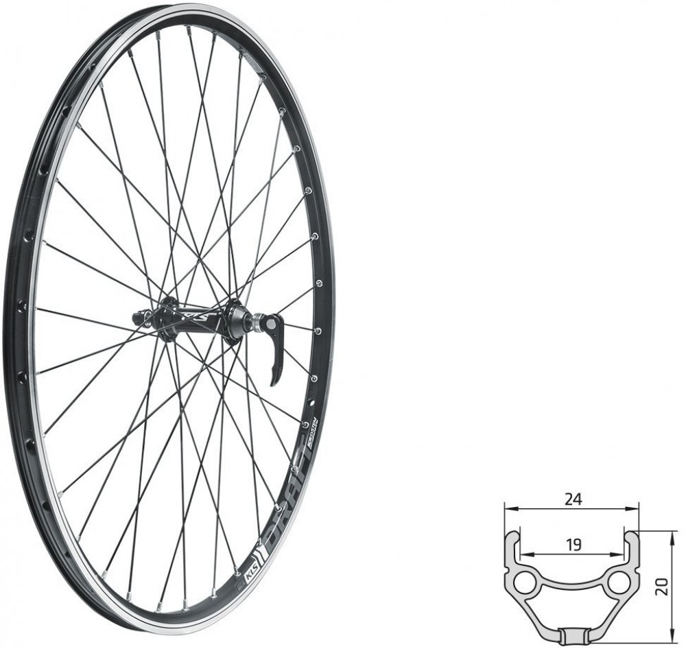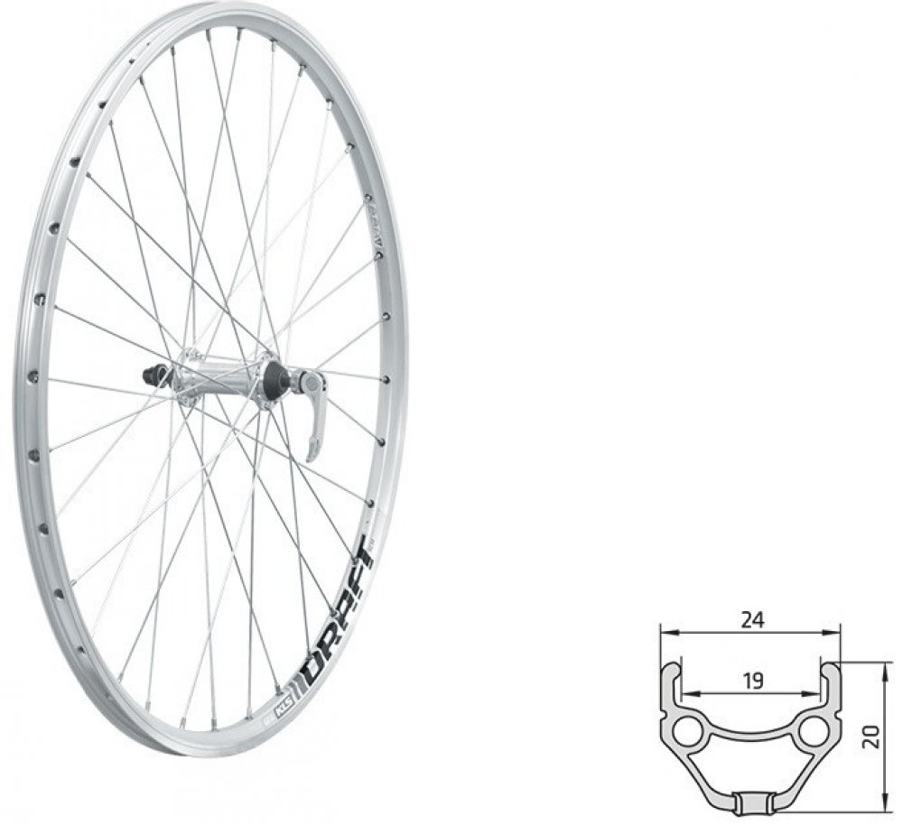 Zapletené koleso KLS DRAFT DSC F je predné koleso určené pre bežné vidlice s diskovými brzdami a upínaním na vidlicu pomocou rýchloupínáku.